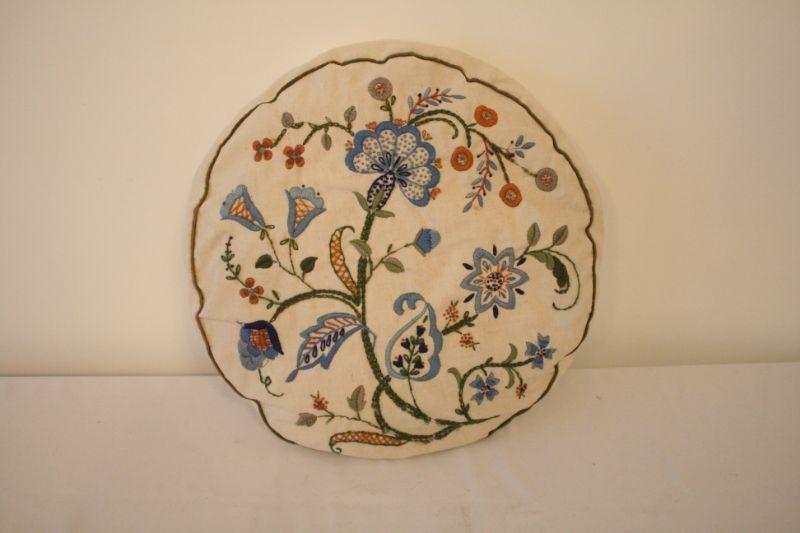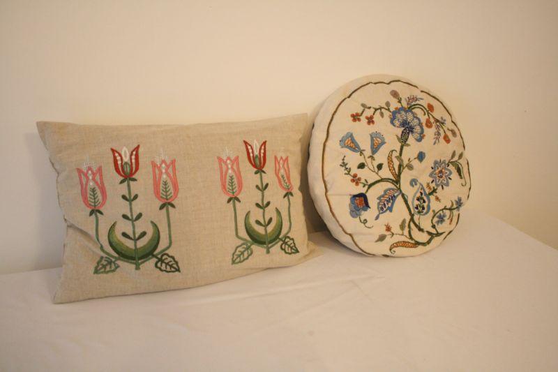 Lot of 2 Vintage Hand Embroidered Floral Throw Pillows - Two different pillows embroidered with crewel embroidery.