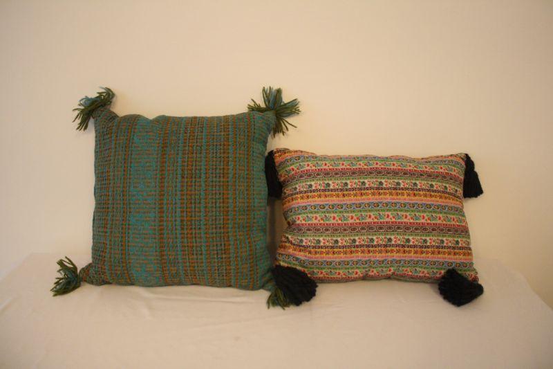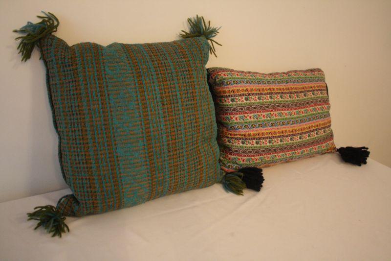 Lot #98: Lot of 2 Vintage Stripe Pattern Fringe Throw Pillows