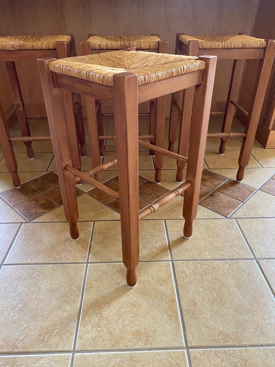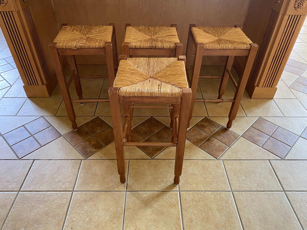 Set of four kitchen stools. 14x27 inches. Please see all pictures for content of the lot, condition of the lot, and measurements if taken. Pictures are the best representation of the items listed and items are untested unless indicated in description. Thank you for looking and have fun bidding!