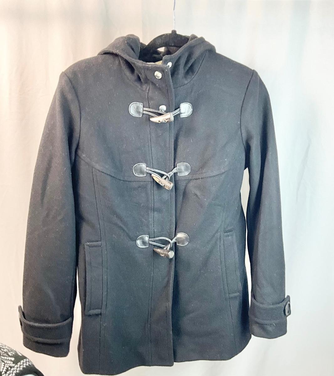 MICHAEL KORS Black Wool Hooded Toggle Coat (size 8), Zip/Snap/Toggle Closure