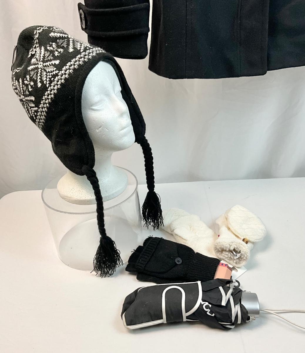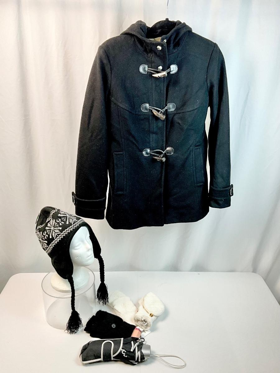 Lot M 353 MICHAEL KORS Black Wool Hooded Toggle Coat (size 8), Hat & Mittens