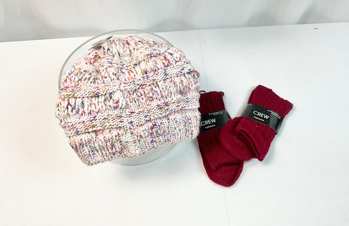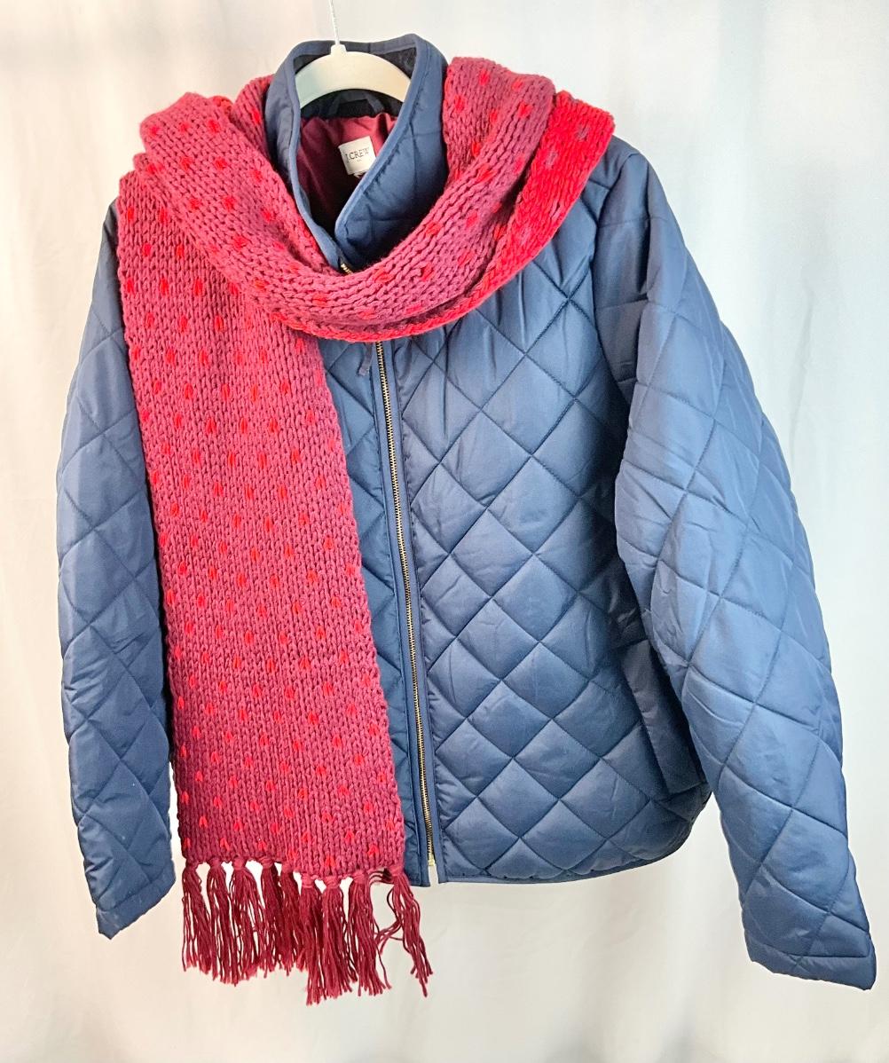 J. Crew Quilted Jacket (size XL)/ Knit Scarf / J.Crew Socks / Hat