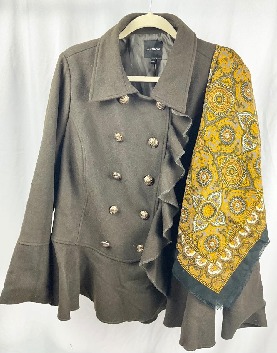 Lot M 361 Lane Bryant Women’s Wool Blend Jacket ( size 18-20) / Three Fashionable Scarves / NWT Gloves