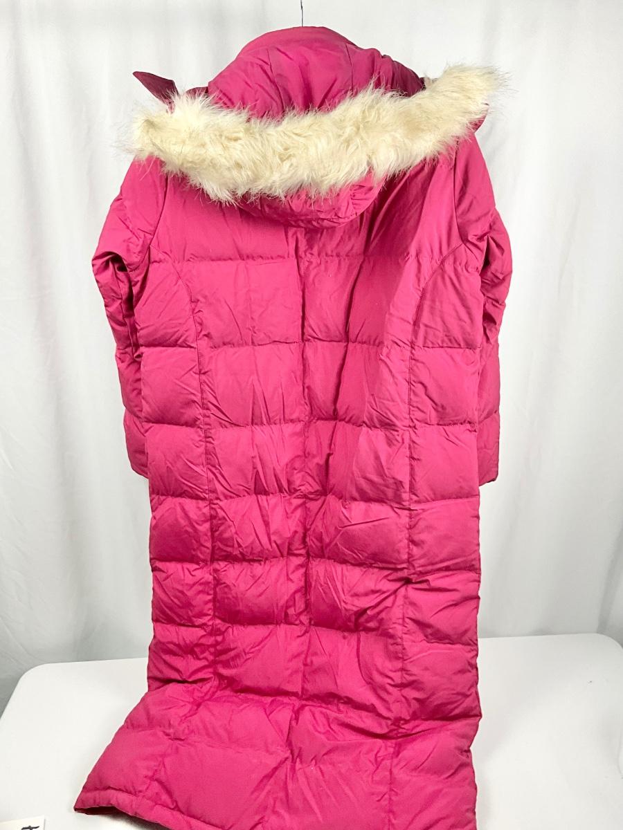 LL Bean Full Length Down Coat with Faux Fur Trimmed Hood (size Medium)