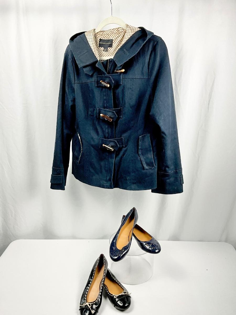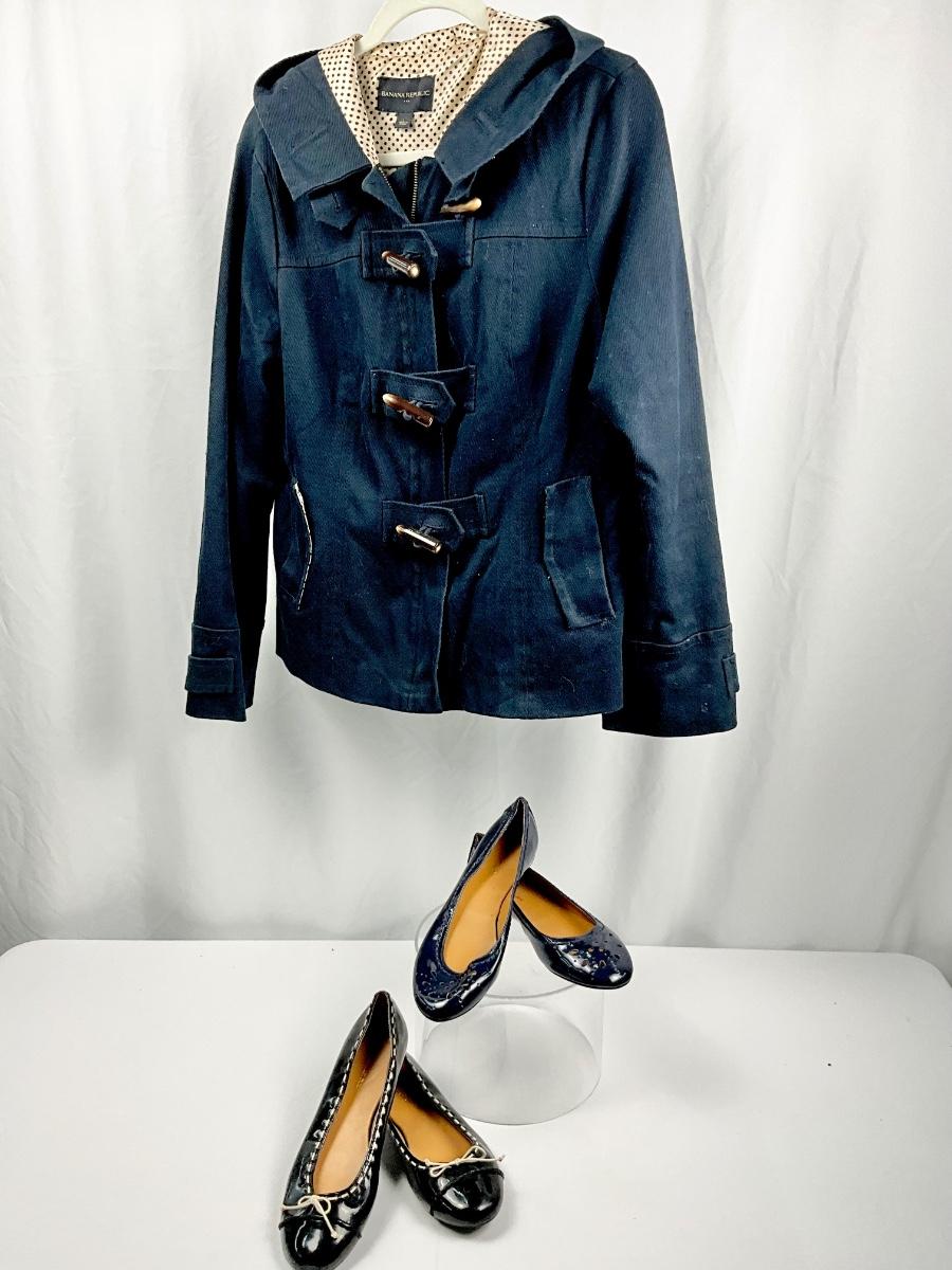 Lot M 374 Banana Republic Jacket ( size Lg ) / Two Pair of Banana Republic Flat Shoes (size 8)