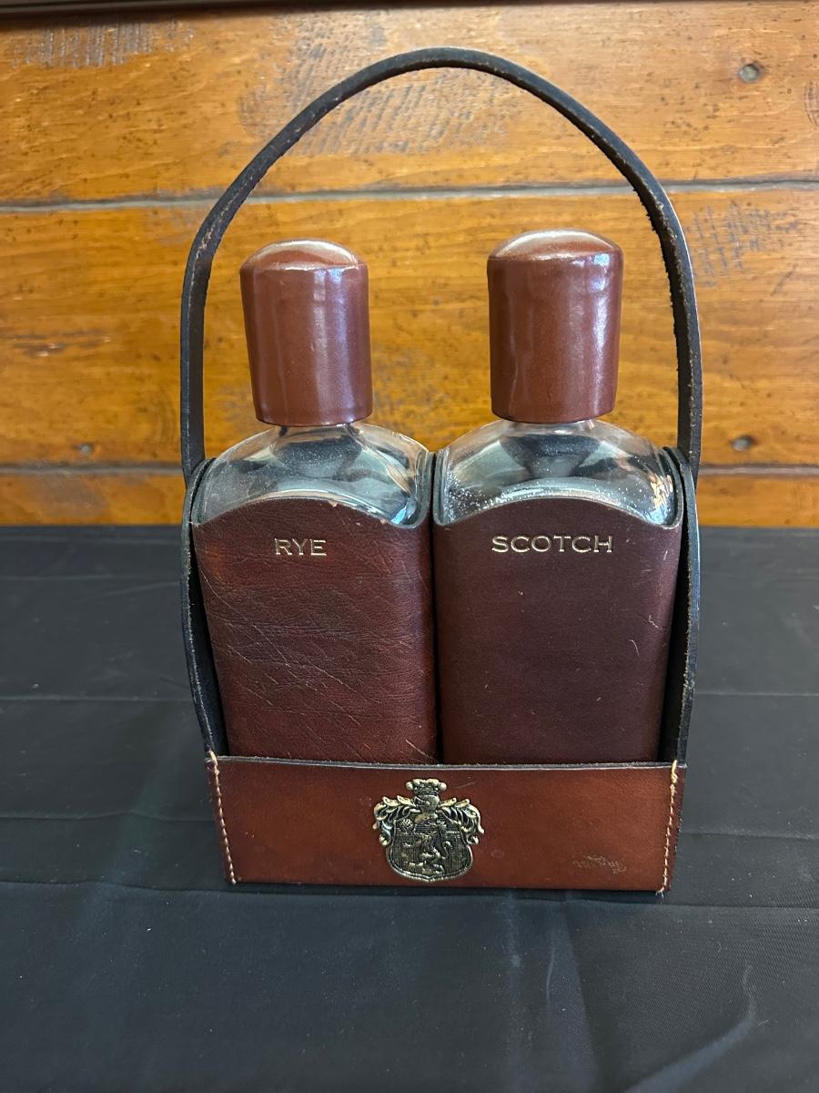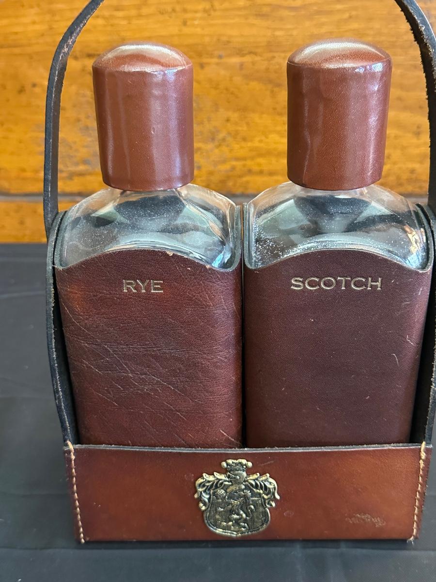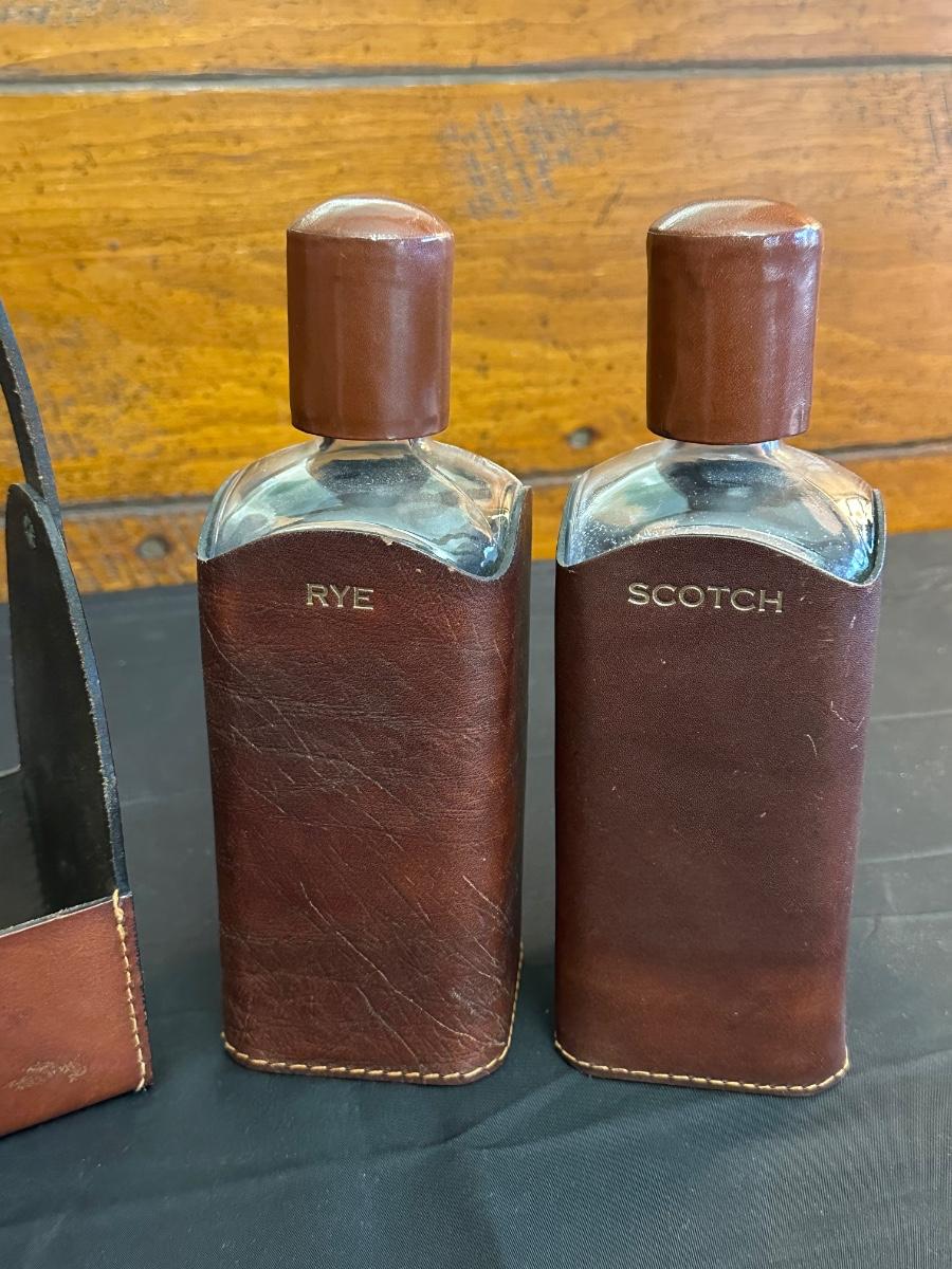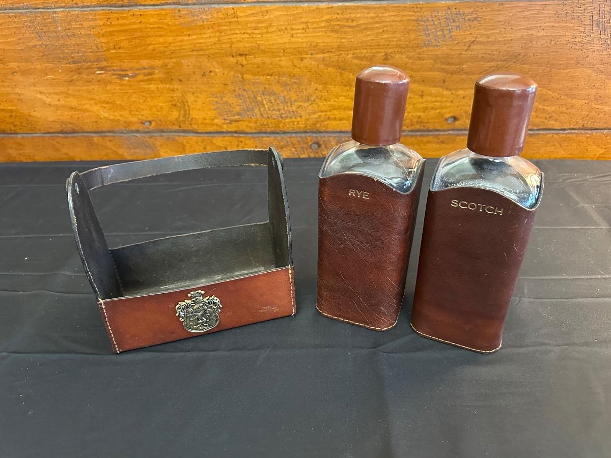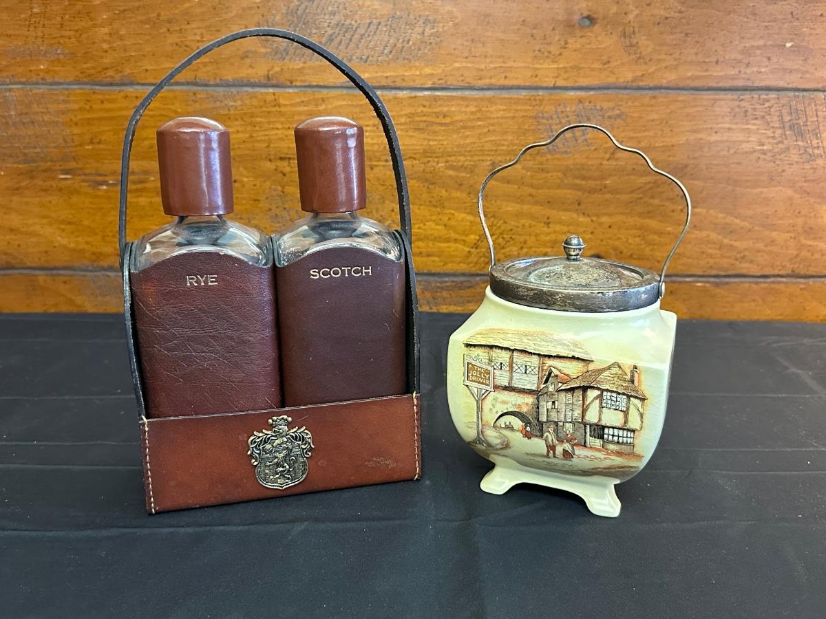 Lot Made in England, Vintage Jam Jar and Modern Leather Scotch & Rye Decanters