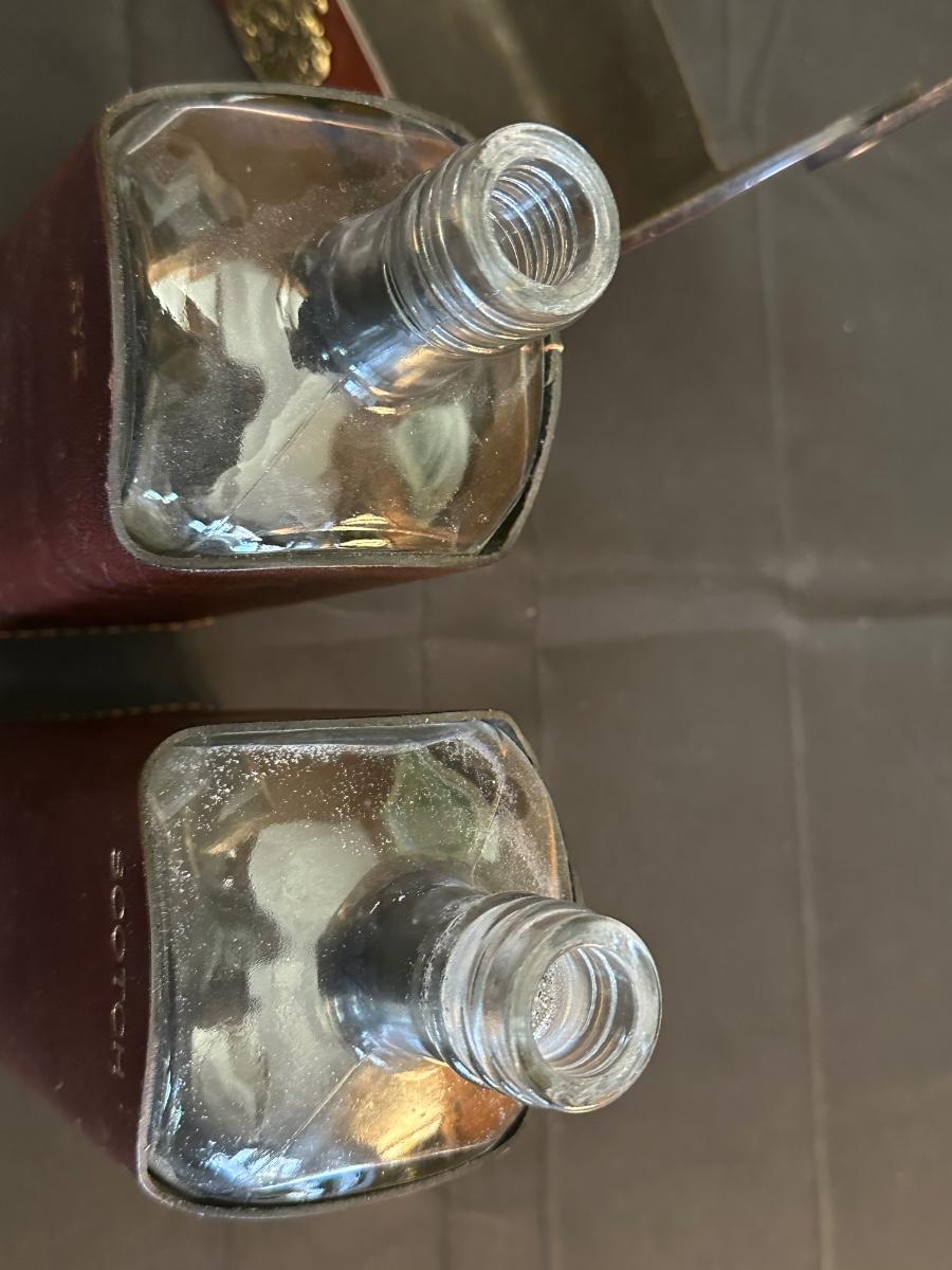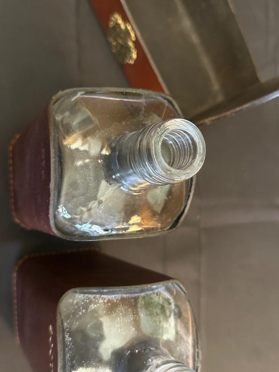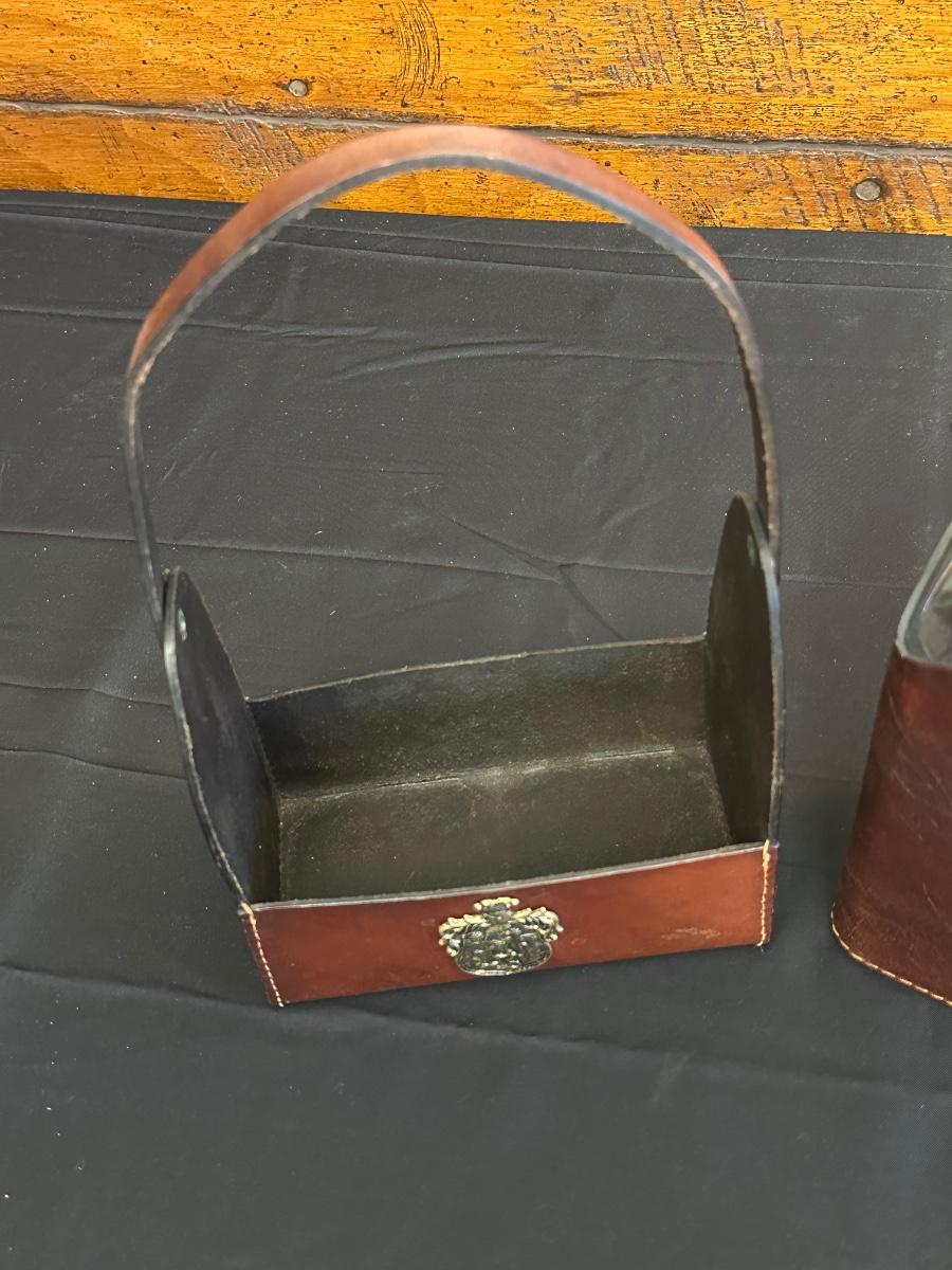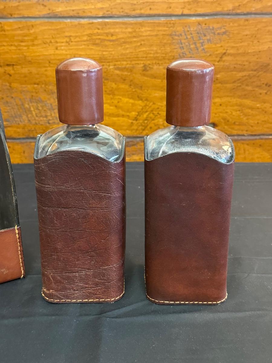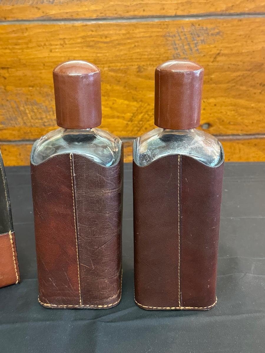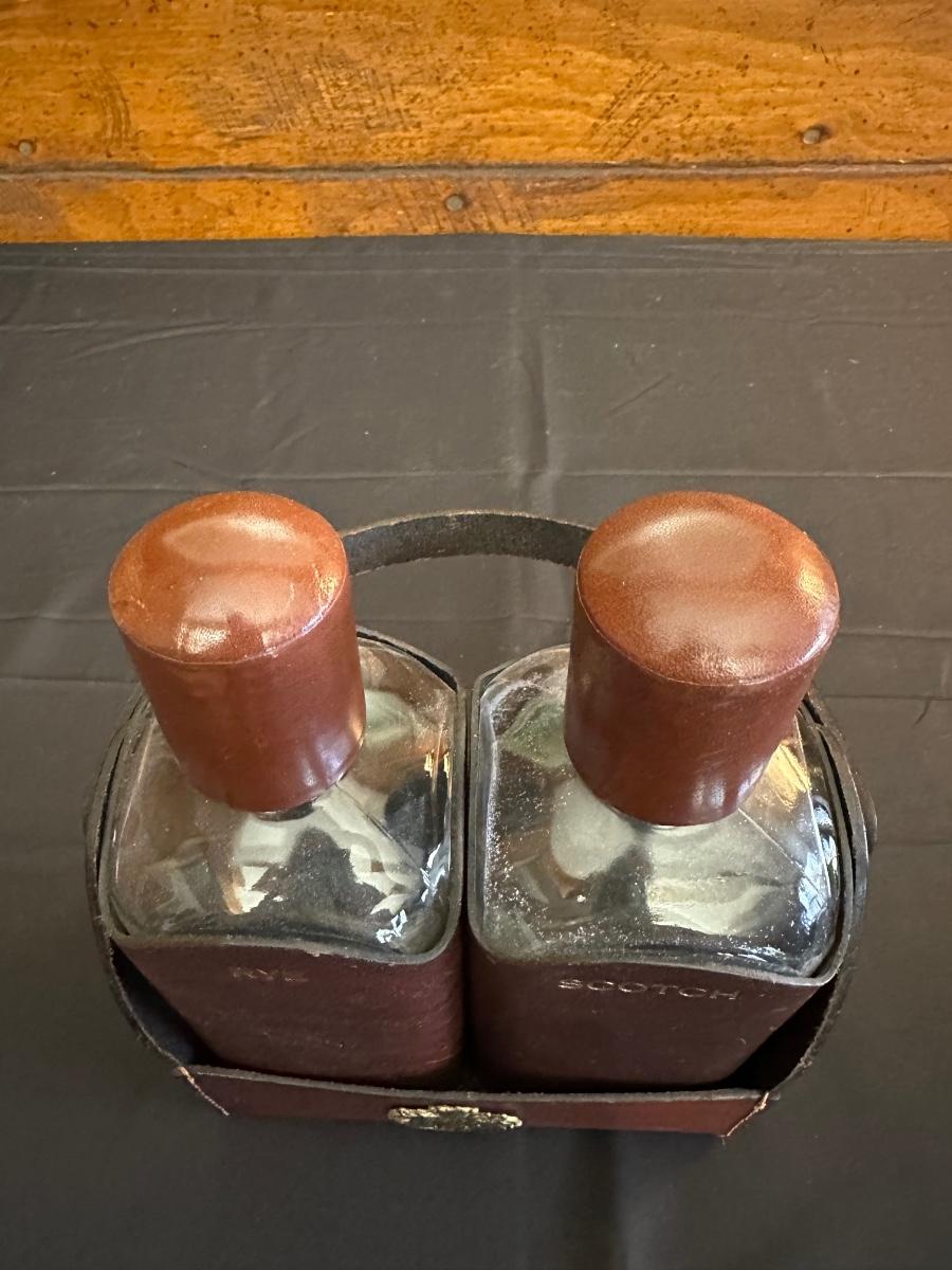Lot Made in England, Vintage Jam Jar and Modern Leather Scotch & Rye Decanters