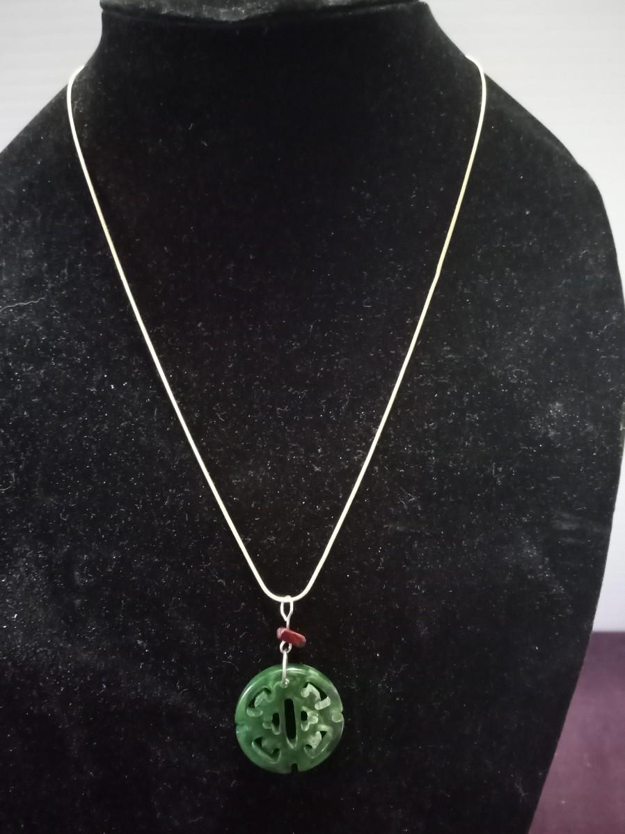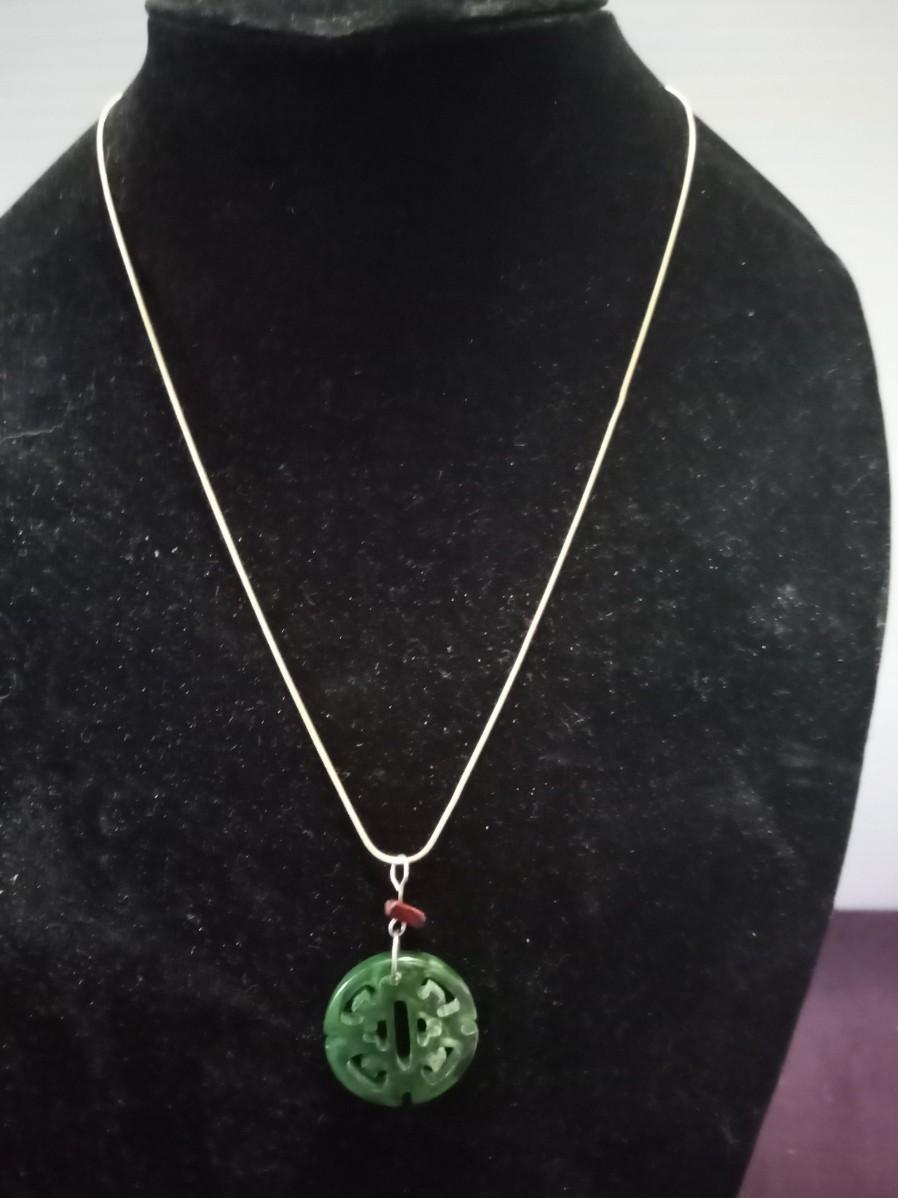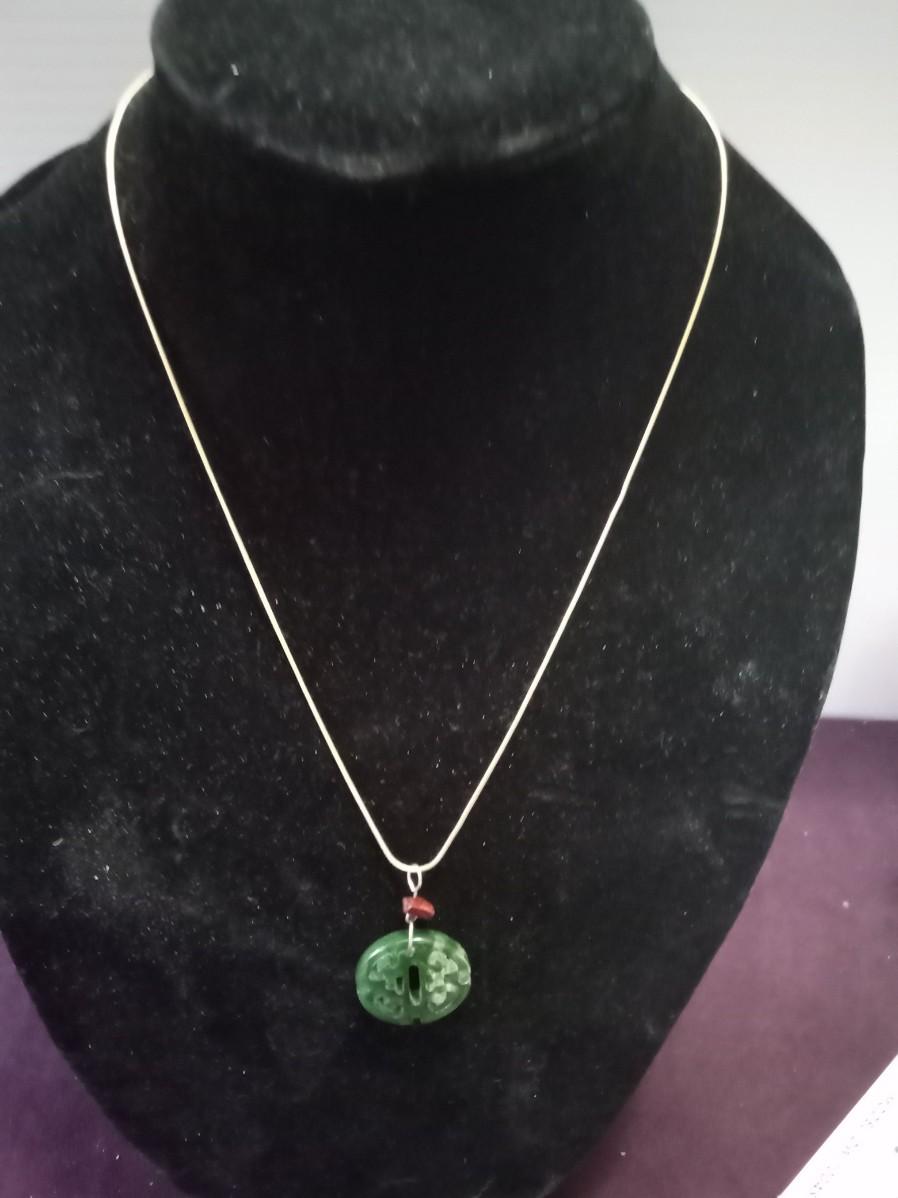 LOT 141  MARKED 14K CHAIN WITH A JADE LIKE PENDANT  (HU)