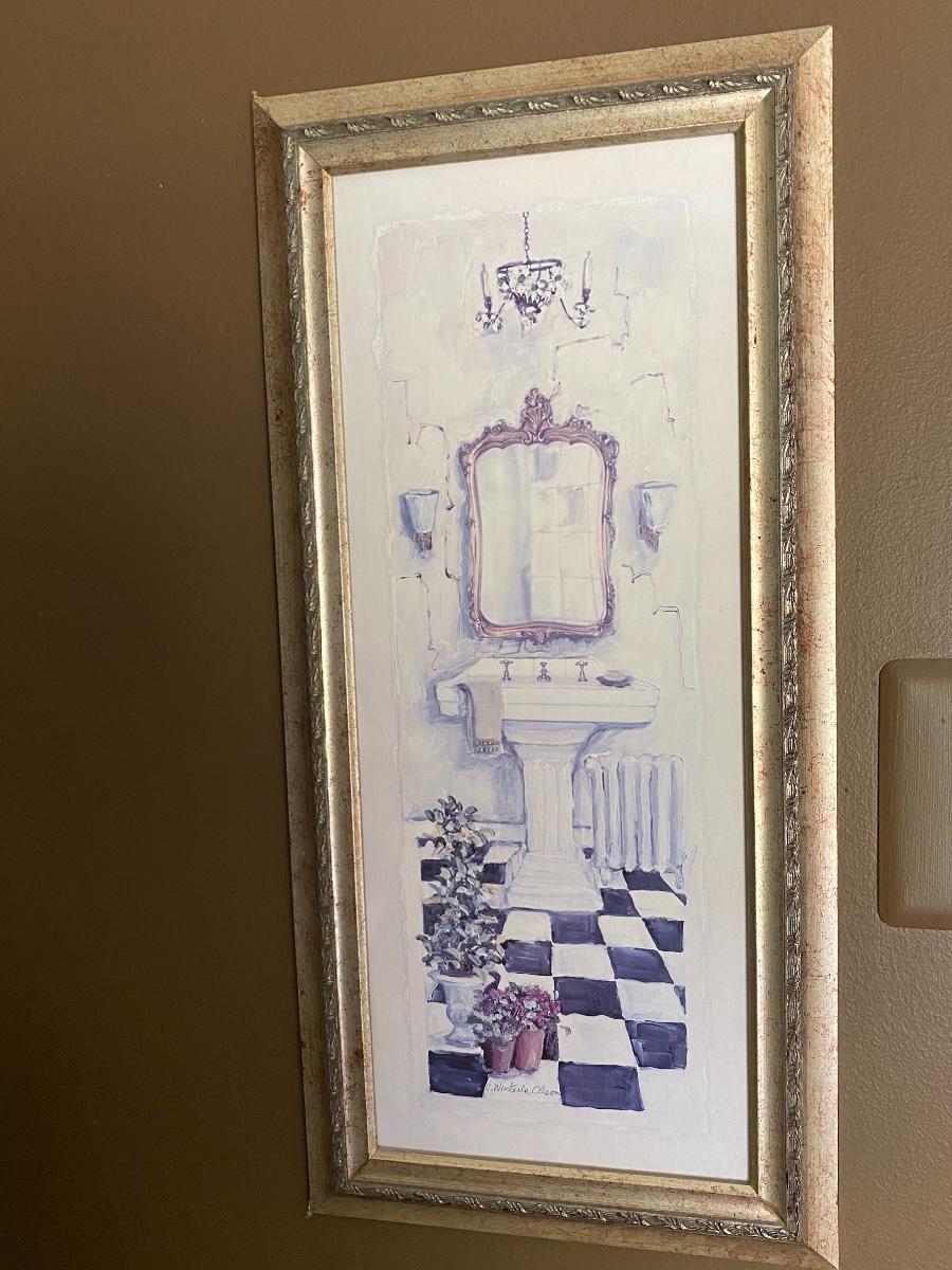 Powder room print 11x23 Please see all pictures for content of the lot, condition of the lot, and measurements if taken. Pictures are the best representation of the items listed and items are untested unless indicated in description. Thank you for looking and have fun bidding!