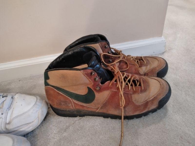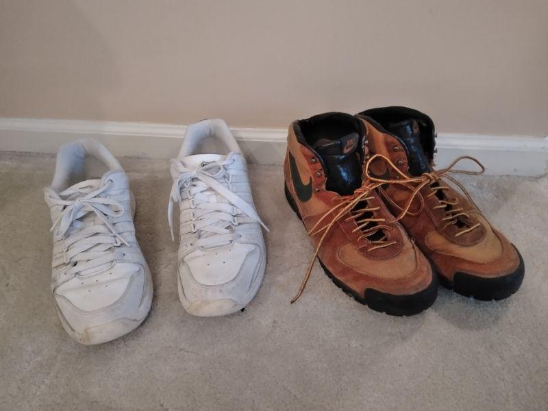 SWISS TENNIS SHOES SIZE 10.5, MEN'S NIKE HIKING BOOTS SIZE 10.5