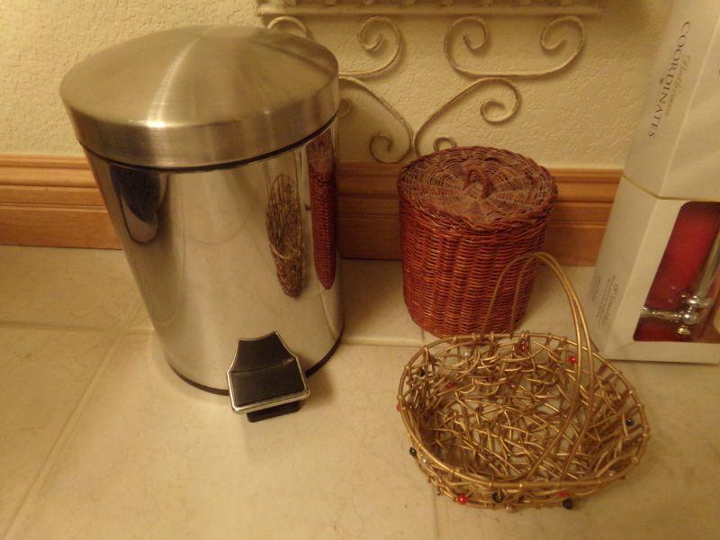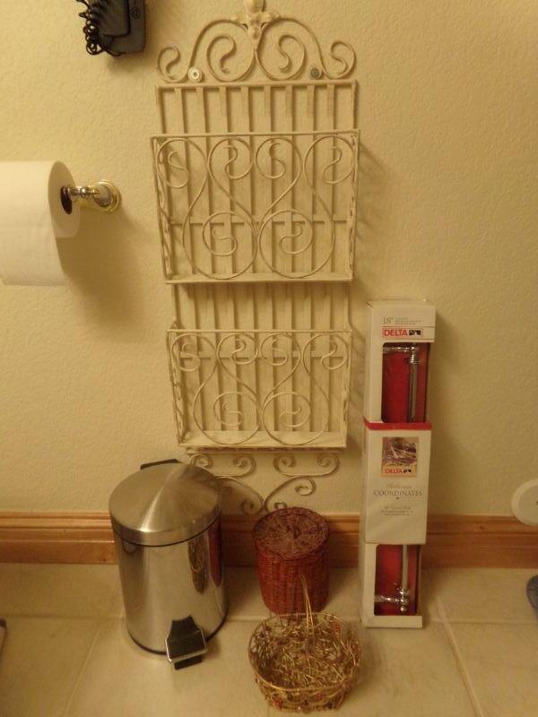 METAL MAGAZINE RACK, NEW TOWEL RACK, TRASH CAN, 2-BASKETS