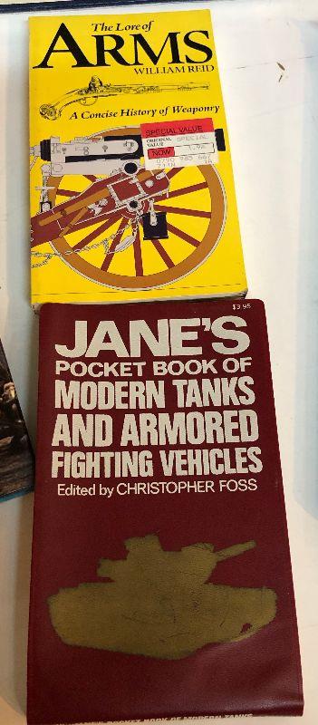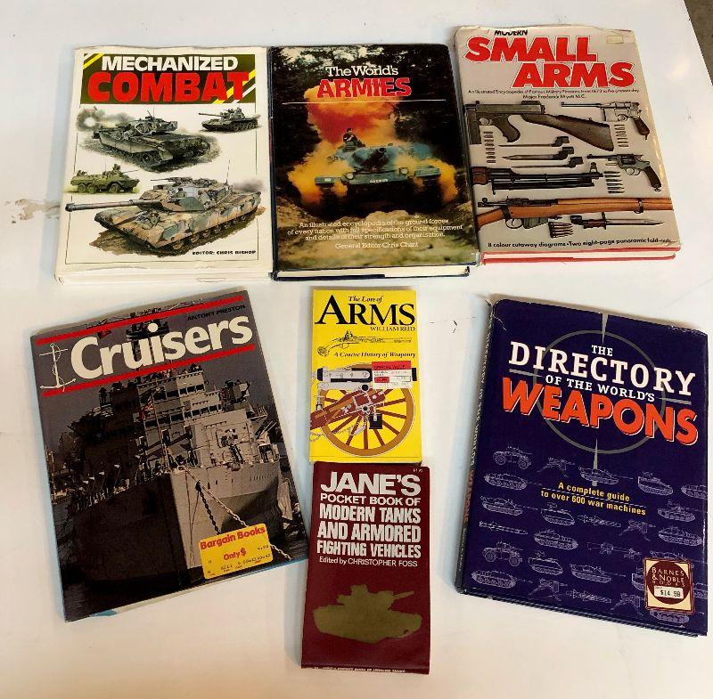 Here is a lot of seven(7) books on military subjects...Tanks and armor...Naval Cruisers...Small Arms...Jane's...World's Weapons Directory. etc...
