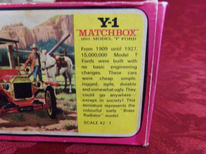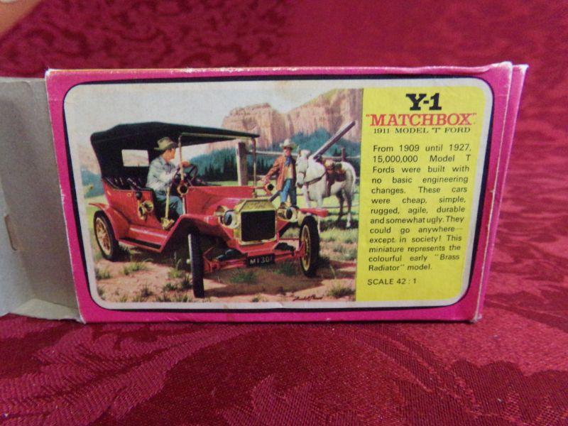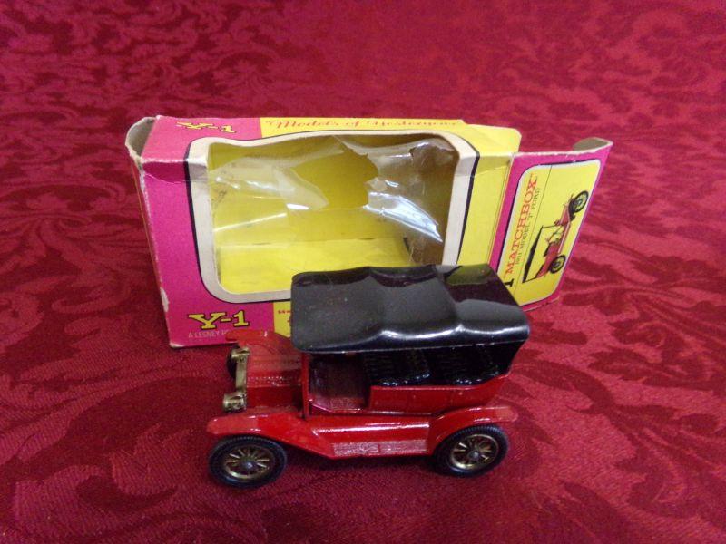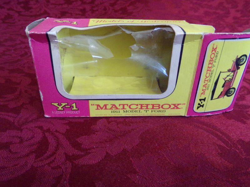 LESNEY-MATCHBOX 1911 MODEL T FORD. IT DOES HAVE THE ORIGINAL BOX, BUT BOX DOES HAVE SOME DAMAGE TO IT.