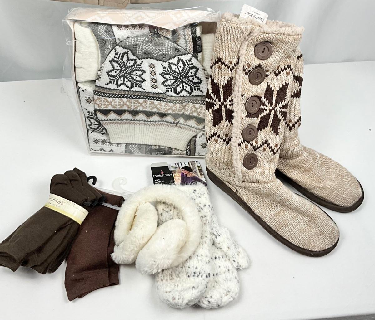 NWT Hat, Scarf, Gloves, Socks, Cuddl Duds Mittens,