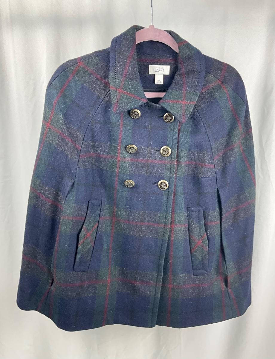 LOFT Tartan Wool Plaid Double Breasted Cape