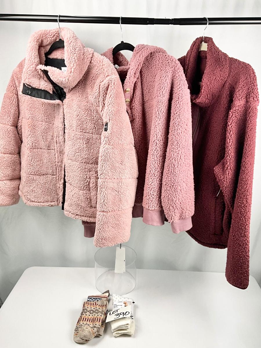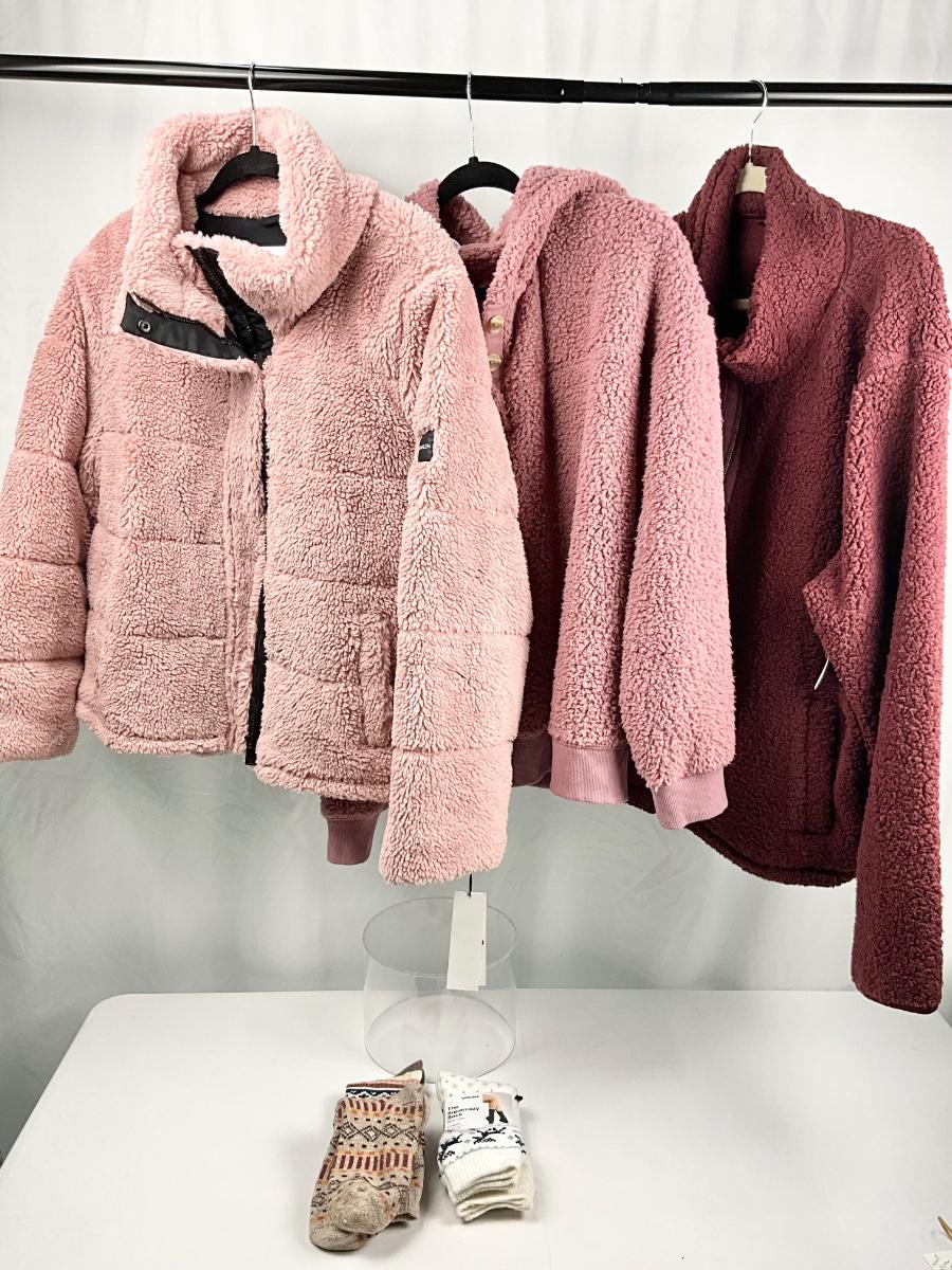 Lot N 390 NWT Calvin Klein Women’s Faux Sherpa Coat ( size XXL) / Sonoma High Pile Fleece Hoodie ( size XXL ) / NWT Old Navy High Pile Fleece Jacket / Socks