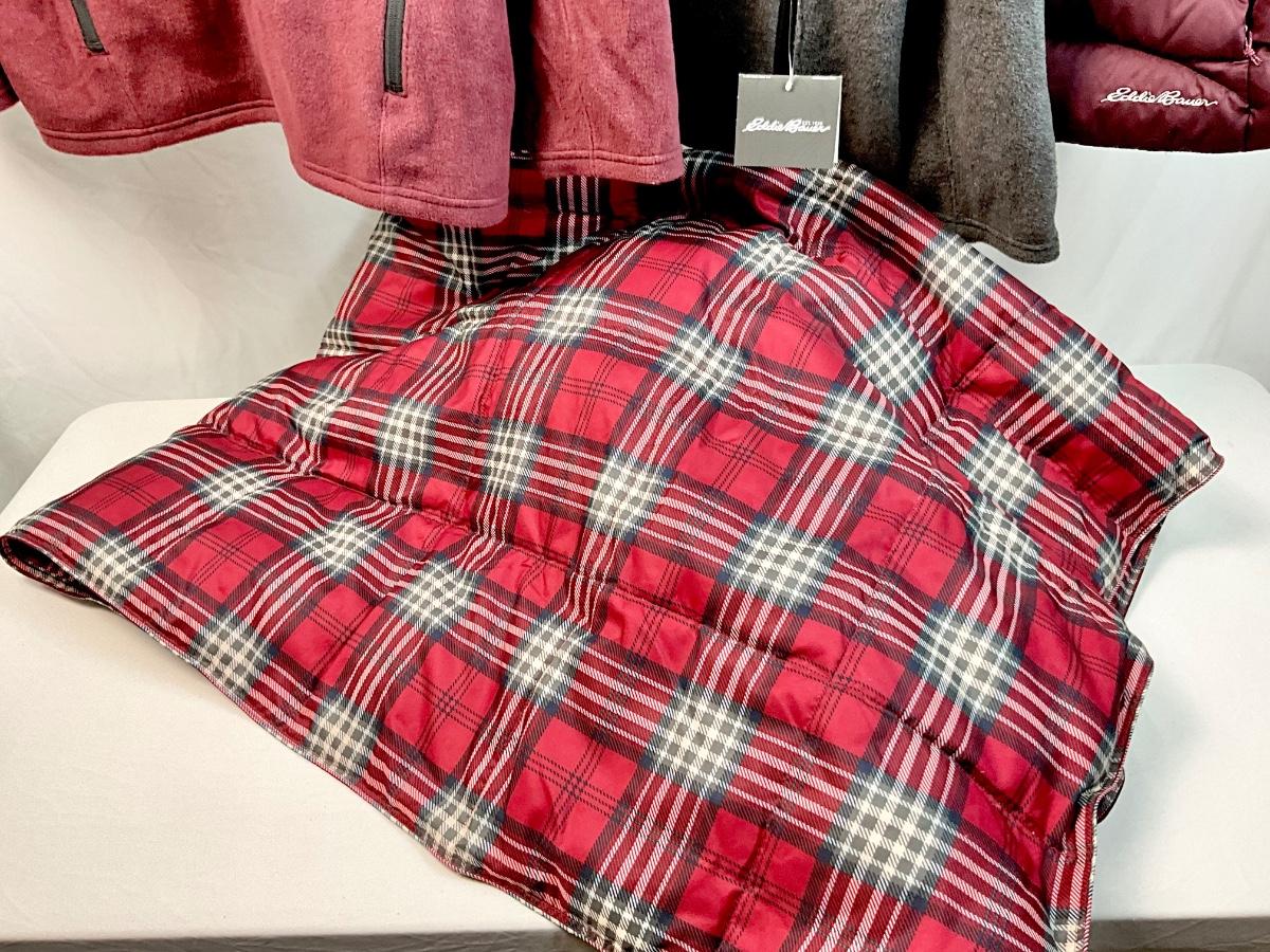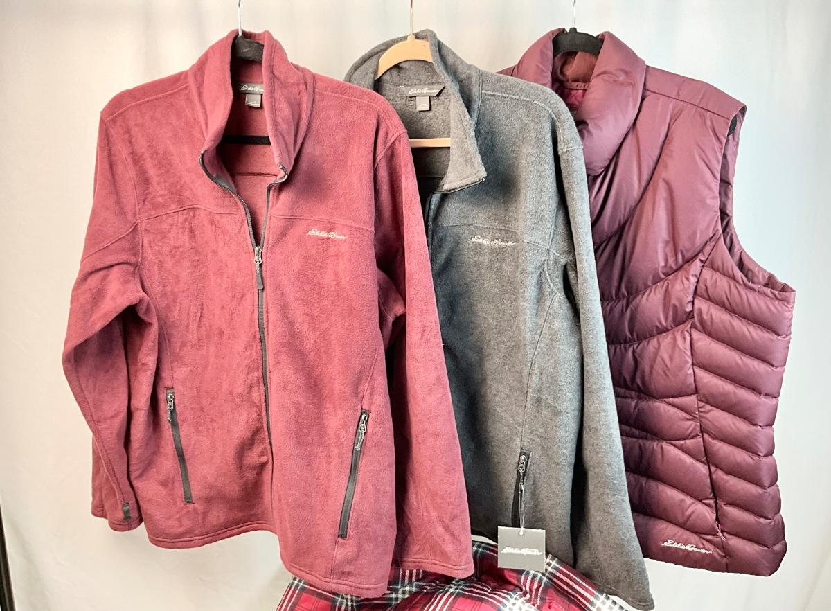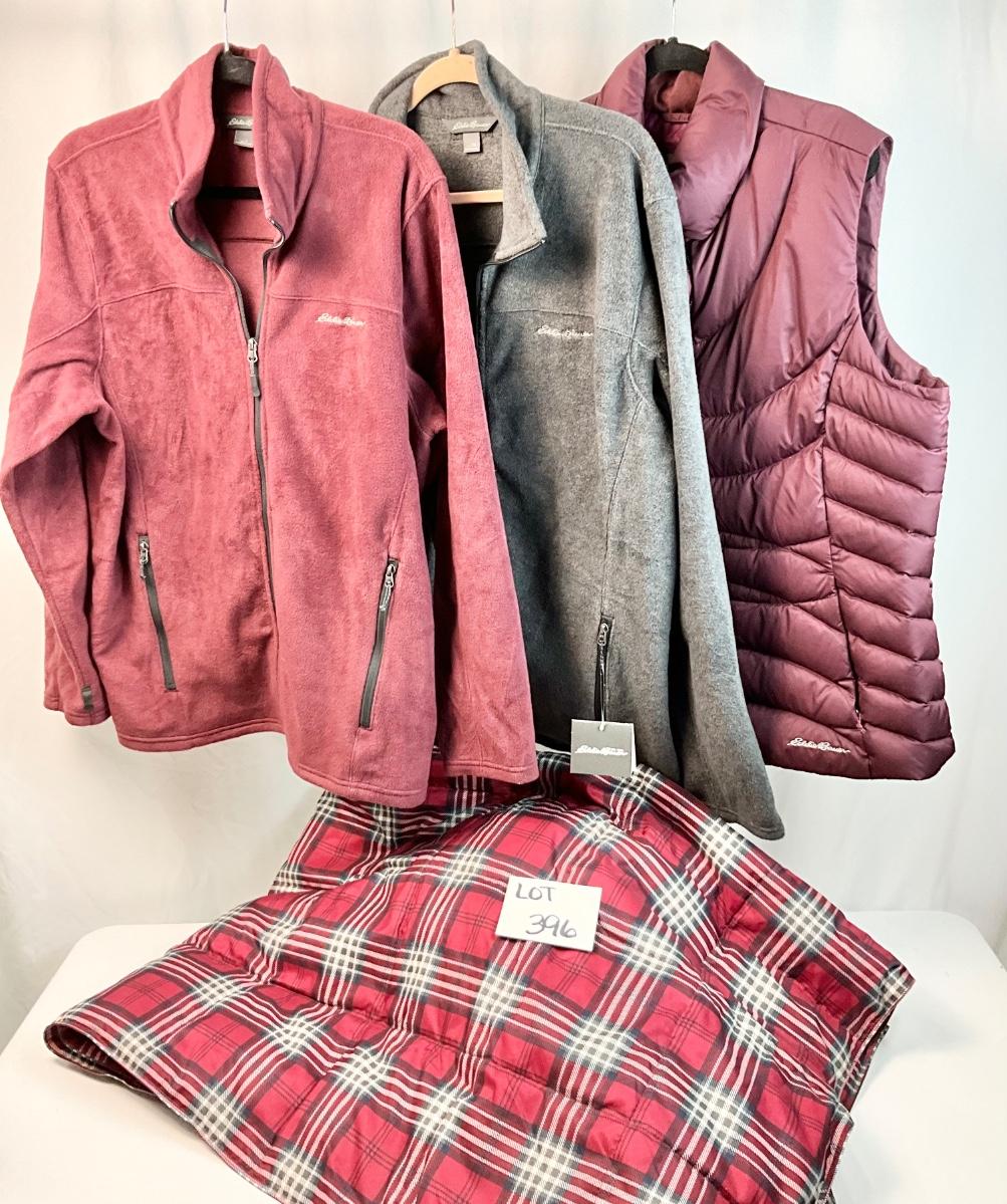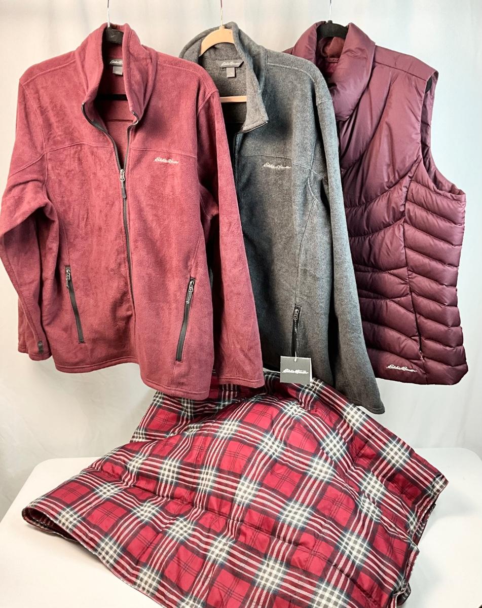 Lot N 396 NWT Eddie Bauer Question 200 Fleece Grey ( size XL ) / Eddie Bauer Fleece (size LG) / Eddie Bauer Puffer Vest ( size XL) / Eddie Bauer Plaid Down Throw