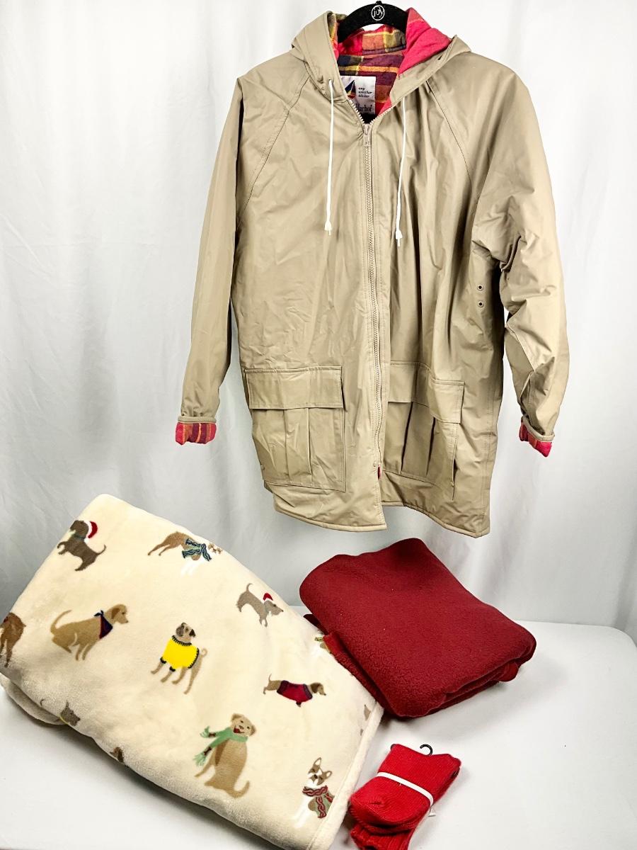 Lot N 402 Misty Harbor Rain Jacket & Cuddl Duds Plush Throw & Fleece Throw