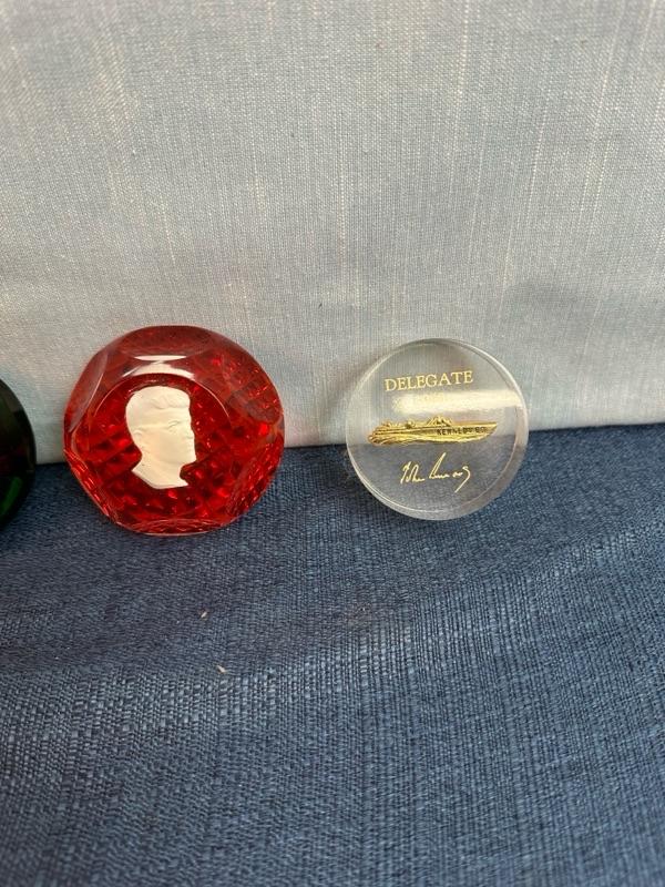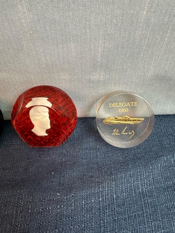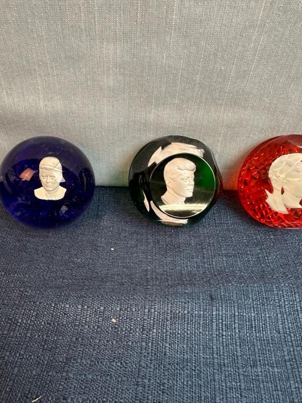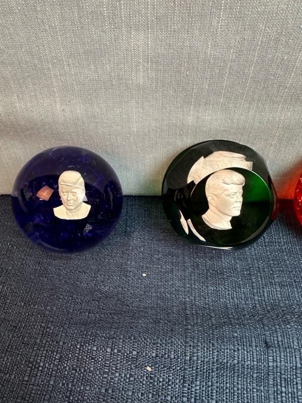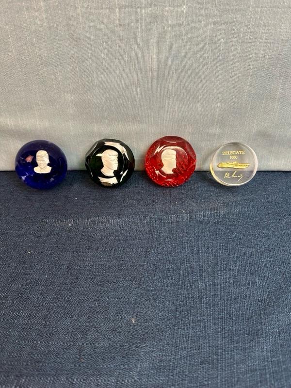 Lot 81 Kennedy paperweights, three glass, one acrylic