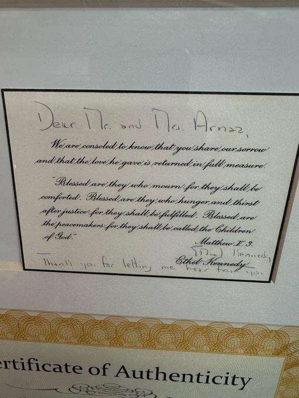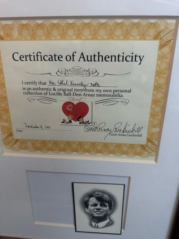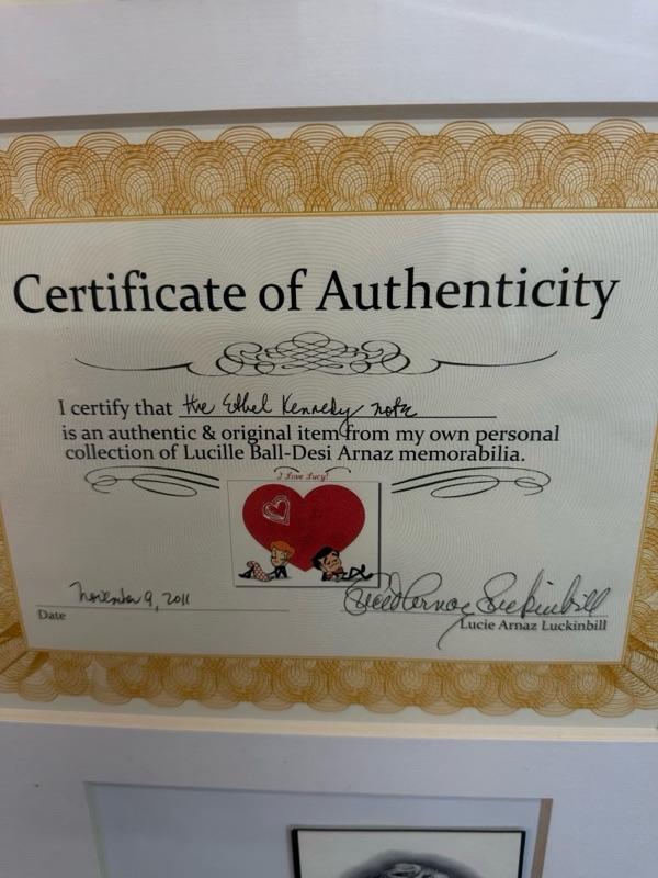 Note from Ethel Kennedy to Lucille Ball and Desi Arnaz, authenticated by Lucy and Desi“˜s daughter, Lucie Arnez Luckinbill