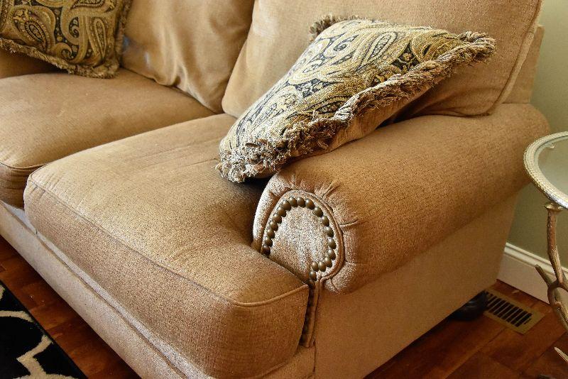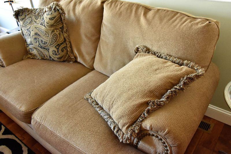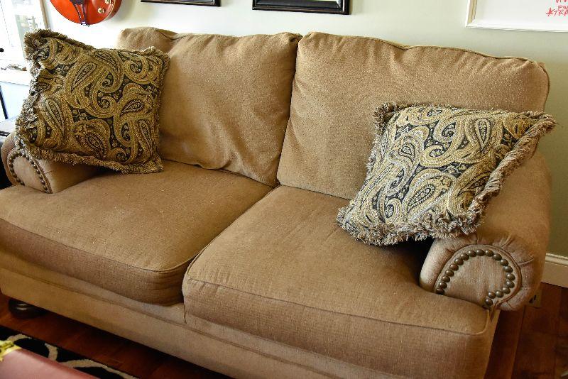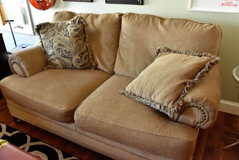 Overstuffed Tan Loveseat