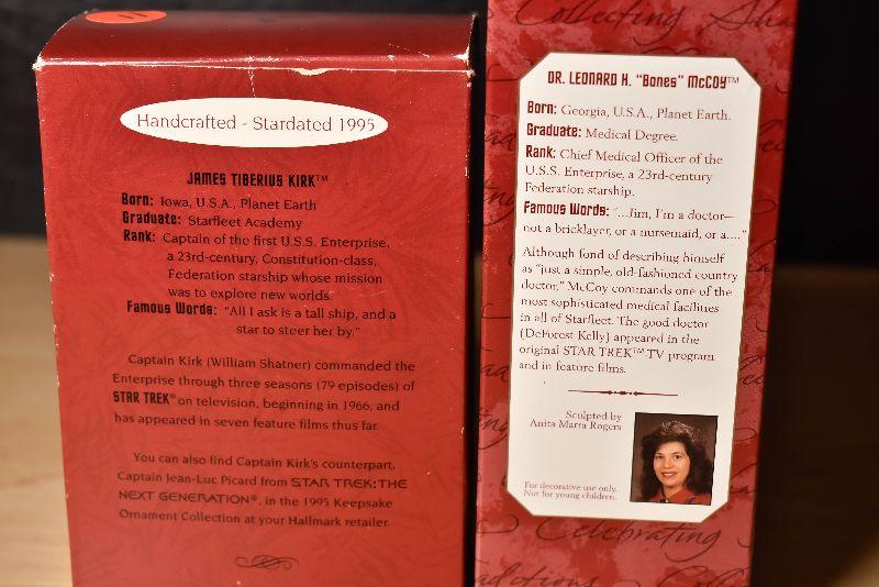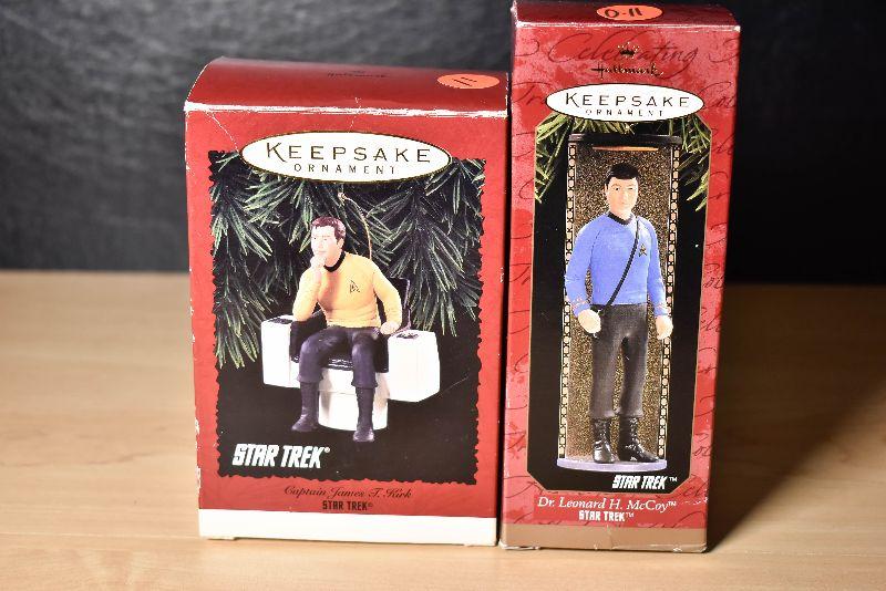 Spock and Captain Kirk, vintage Hallmark ornaments in original boxes.