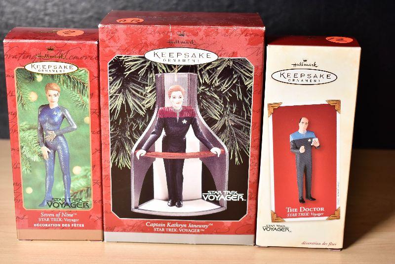 Three Hallmark Keepsake ornaments from Star Trek, in original boxes.