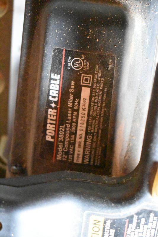 Porter Cable 12" Compound Laser Miter Saw, untested. Bring help to move.