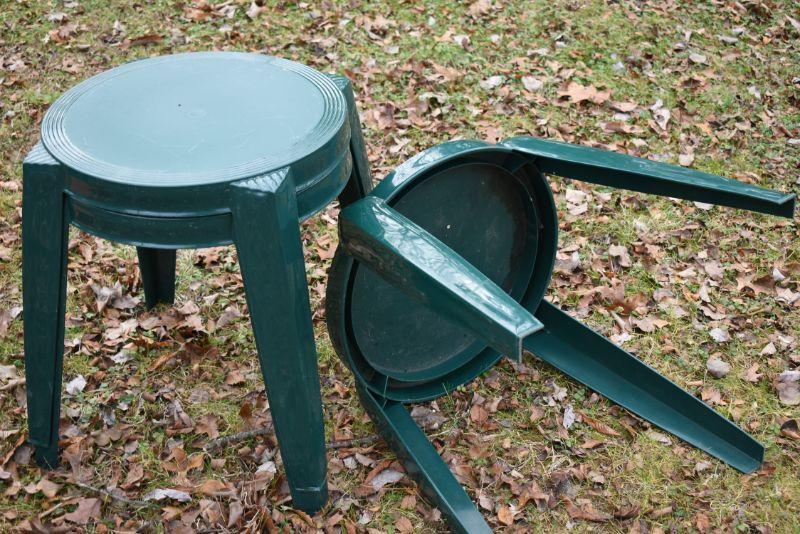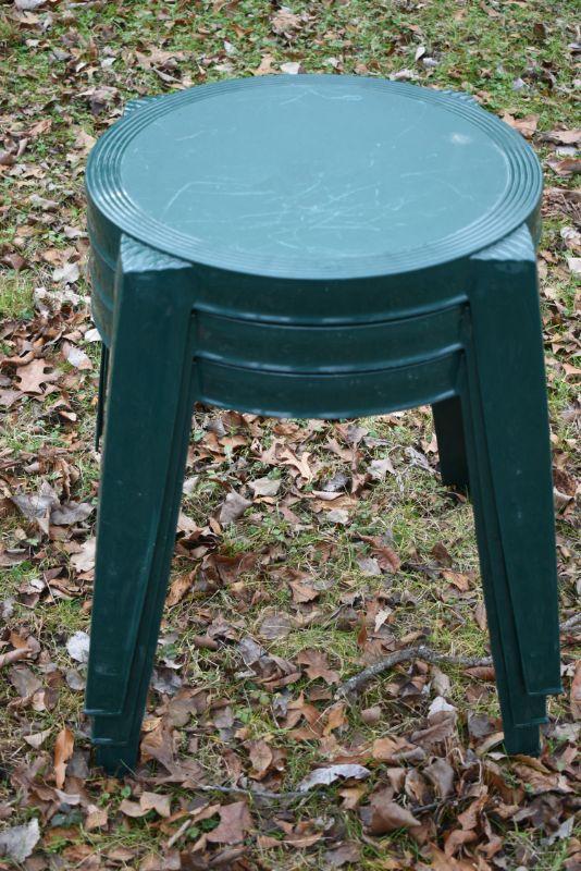Three Green Plastic Stools/Side Tables, 21.5x20.5