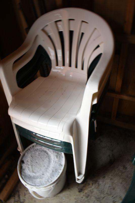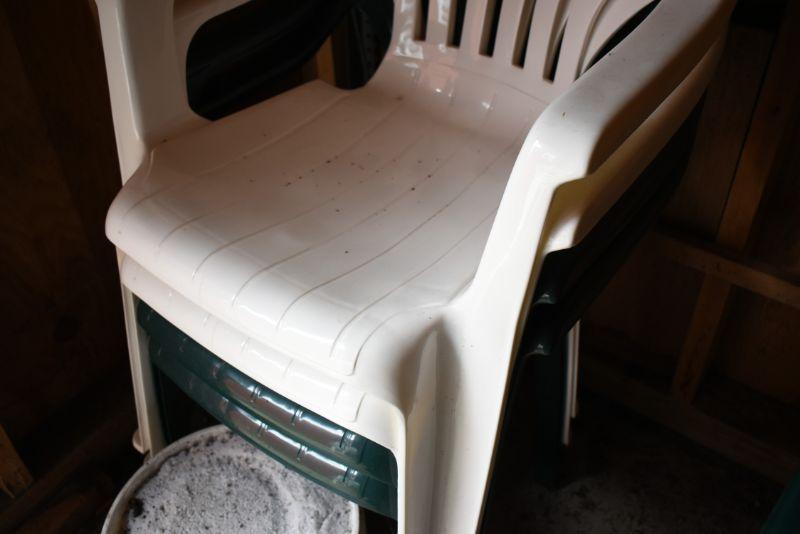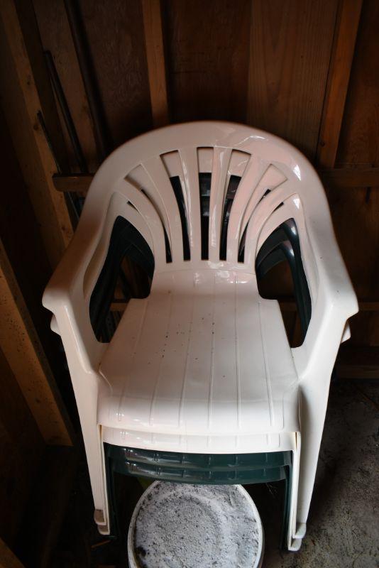 2 Green & 2 White Low-back Outdoor Chairs, like new, just need cleaning.