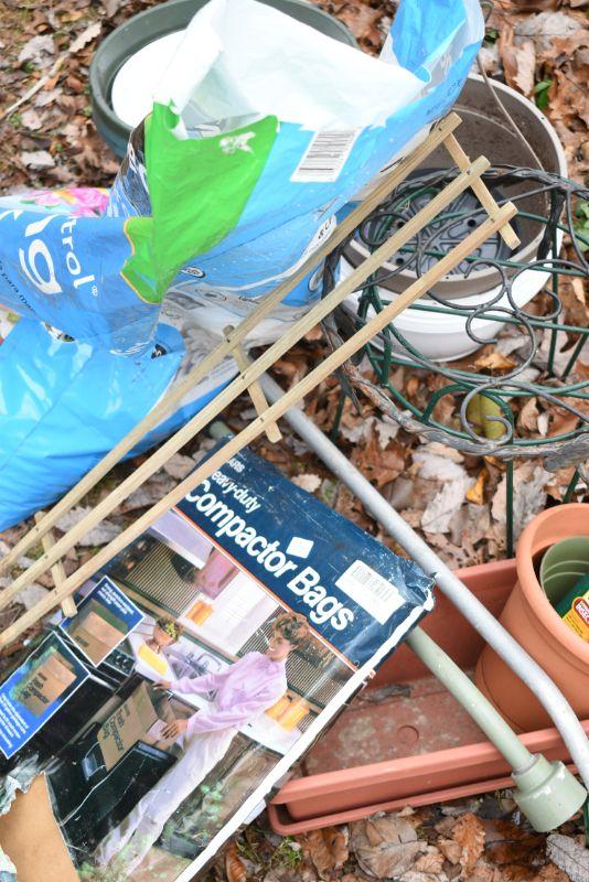 Flower pots, watering wands, wood trellis, flower pot stands, and more. Bring help to move.