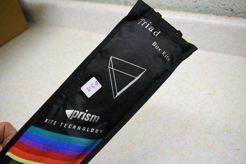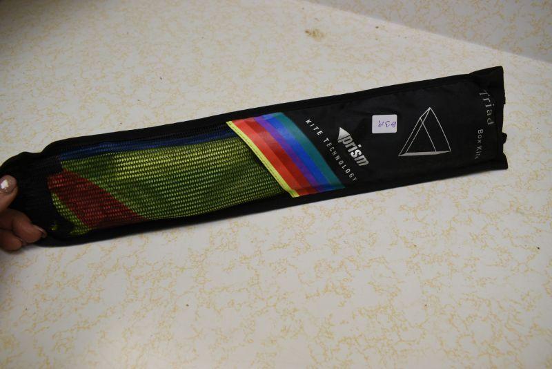 Triad Box Kite by Prism. Like new, in case. Located in basement that has narrow, steep, cement steps, and a sharp turn to right at bottom.