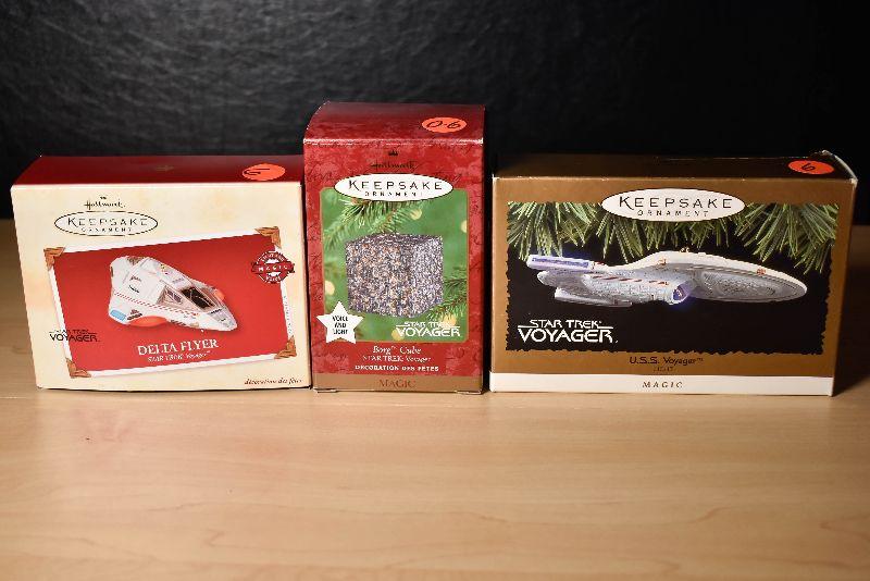 Three Keepsake, Magic ornaments from Star Trek Voyager. Untested.