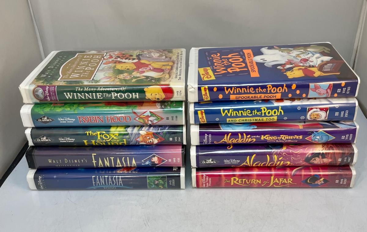 Titles include: Fantasia, Fantasia 2000, The Fox and the Hound, Robin Hood, The Many Adventures of Winnie the Pooh, Aladdin, The Return of Jafar, Aladdin and the King of Thieves, Winnie the Pooh and Christmas Too, and Winnie the Pooh - Spookable Pooh.