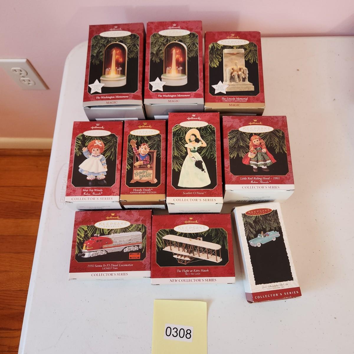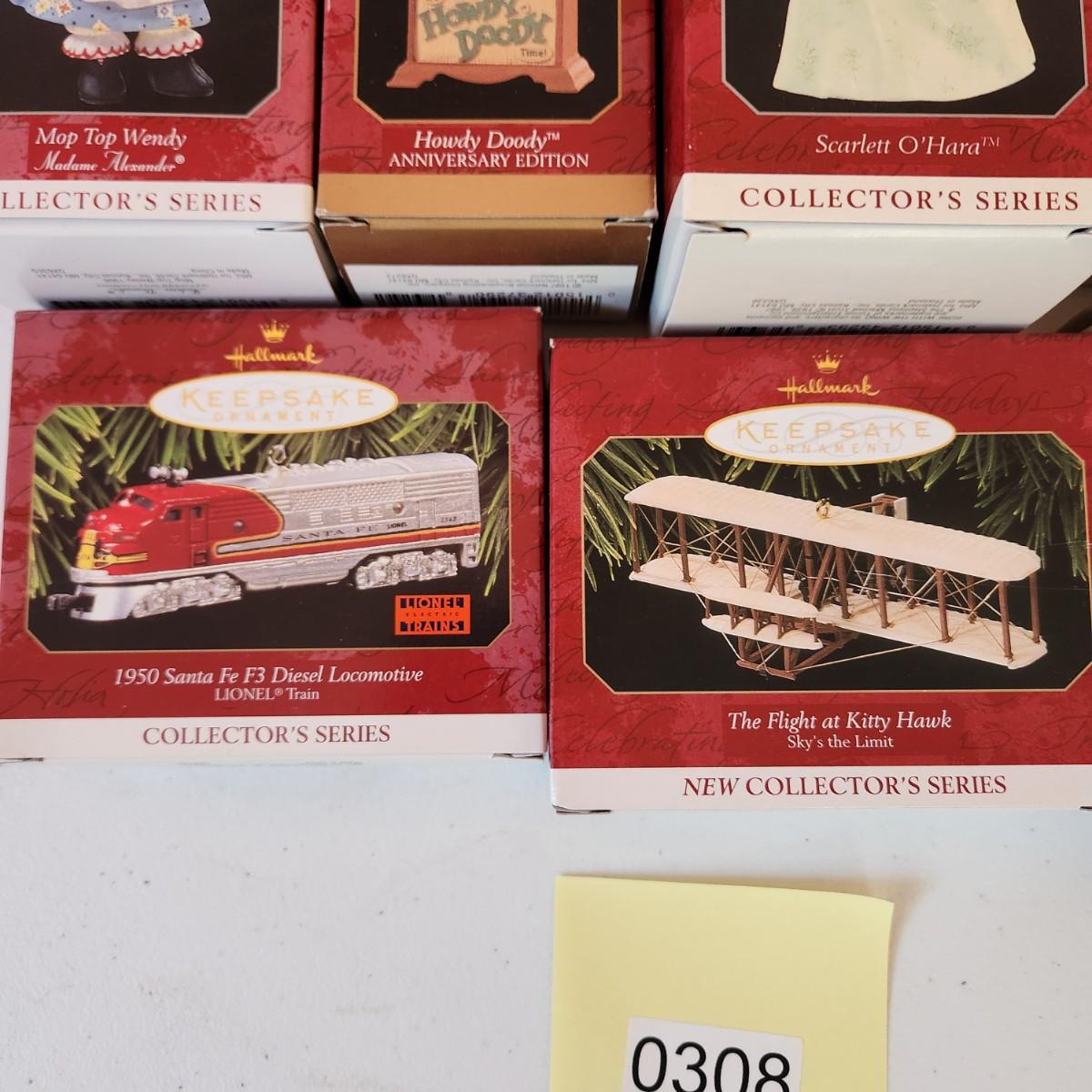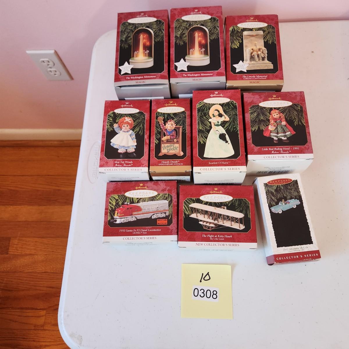 Lot of 10 Hallmark Keepsake Christmas Tree ornaments Train Airplane +++