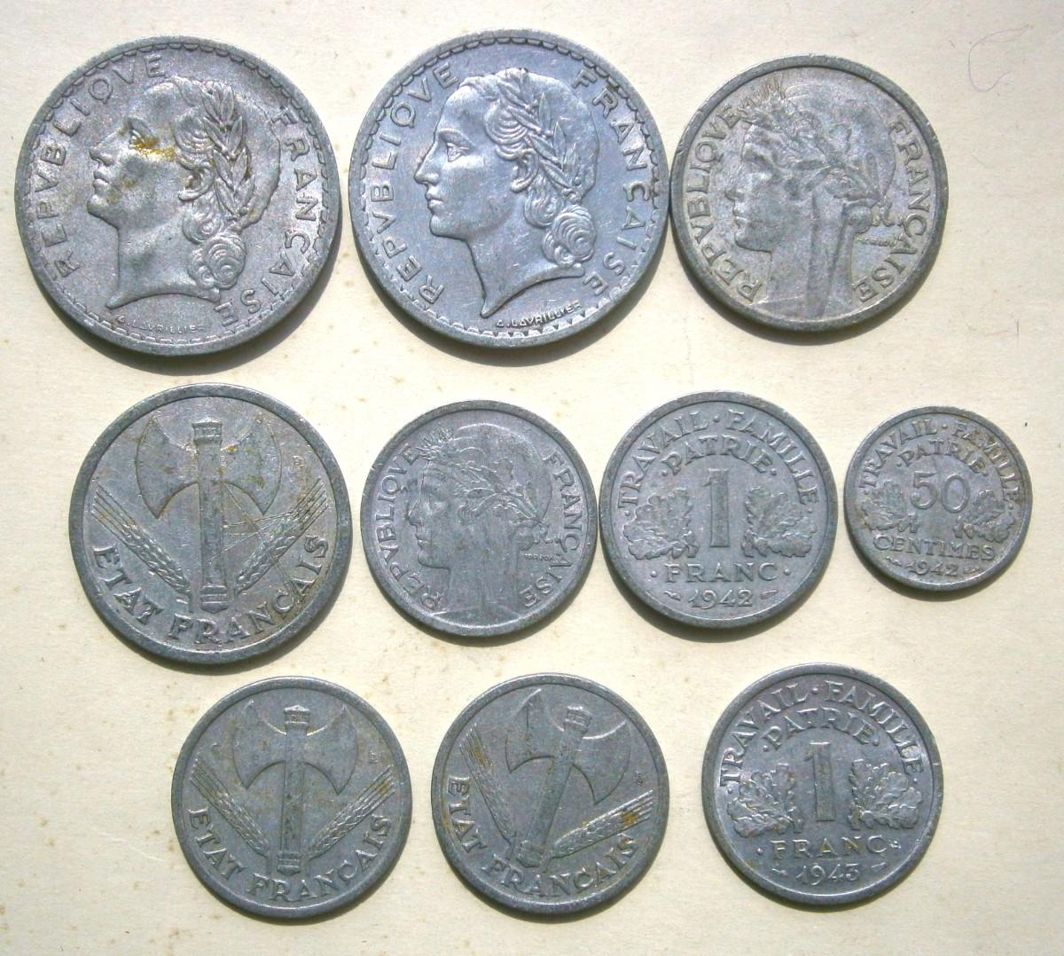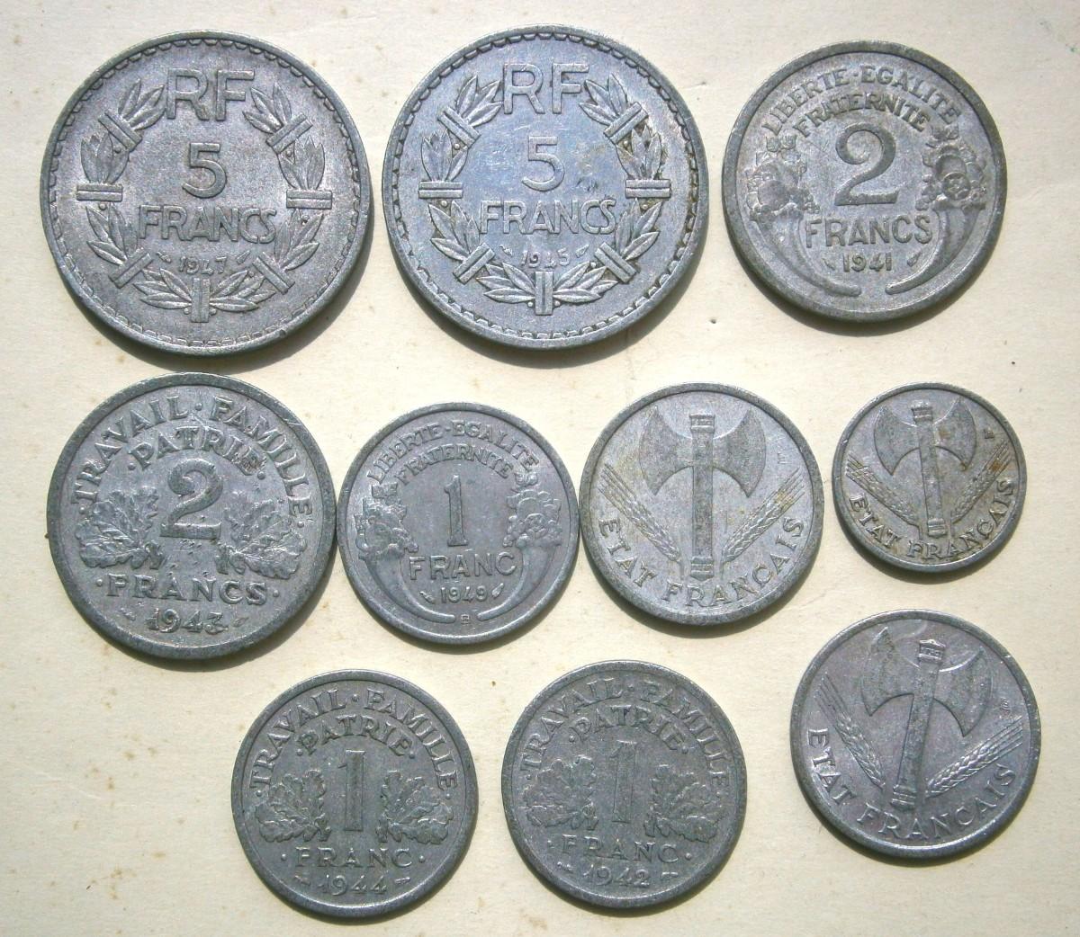 Lot of 10 Old French Coins