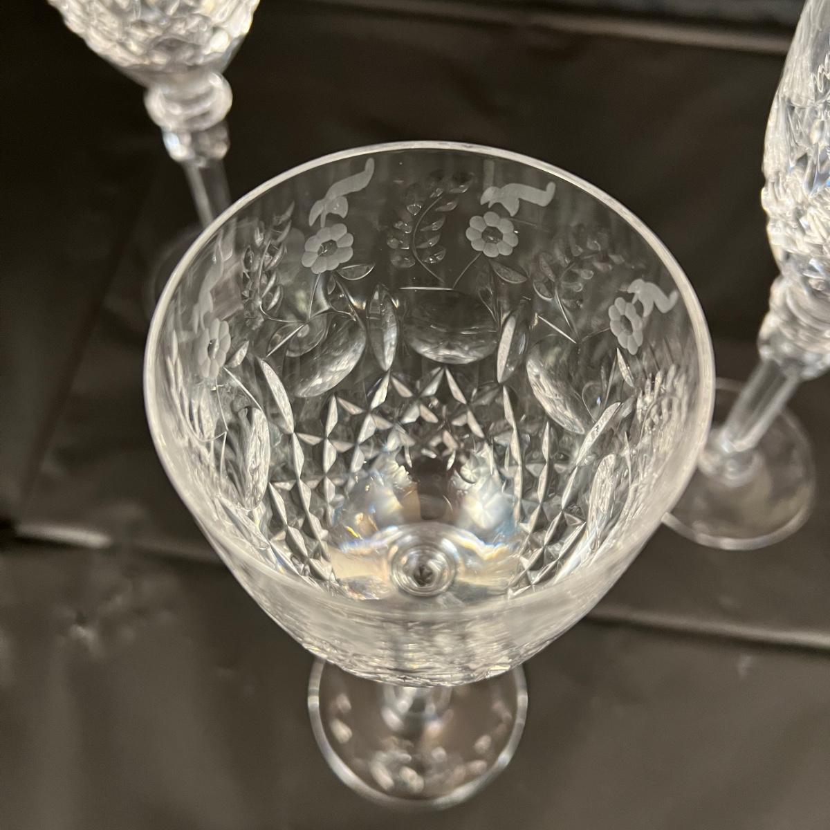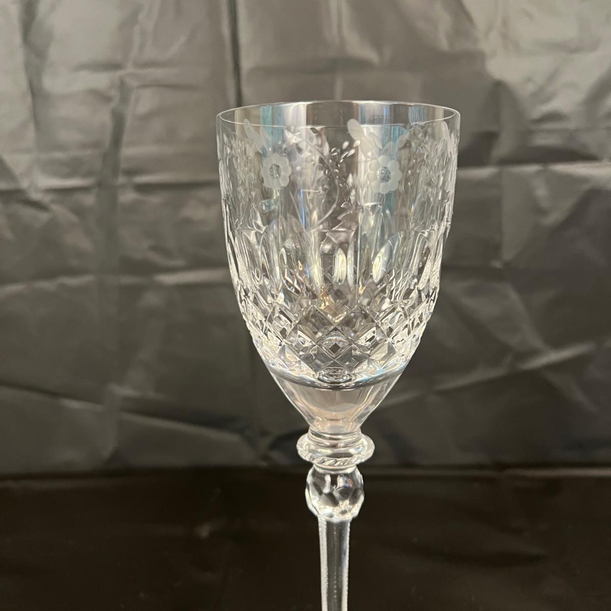 Lot of 10 Rogaska Crystal White Wine or Champagne Glasses. In very good condition, as shown in images (one small chip, shown).