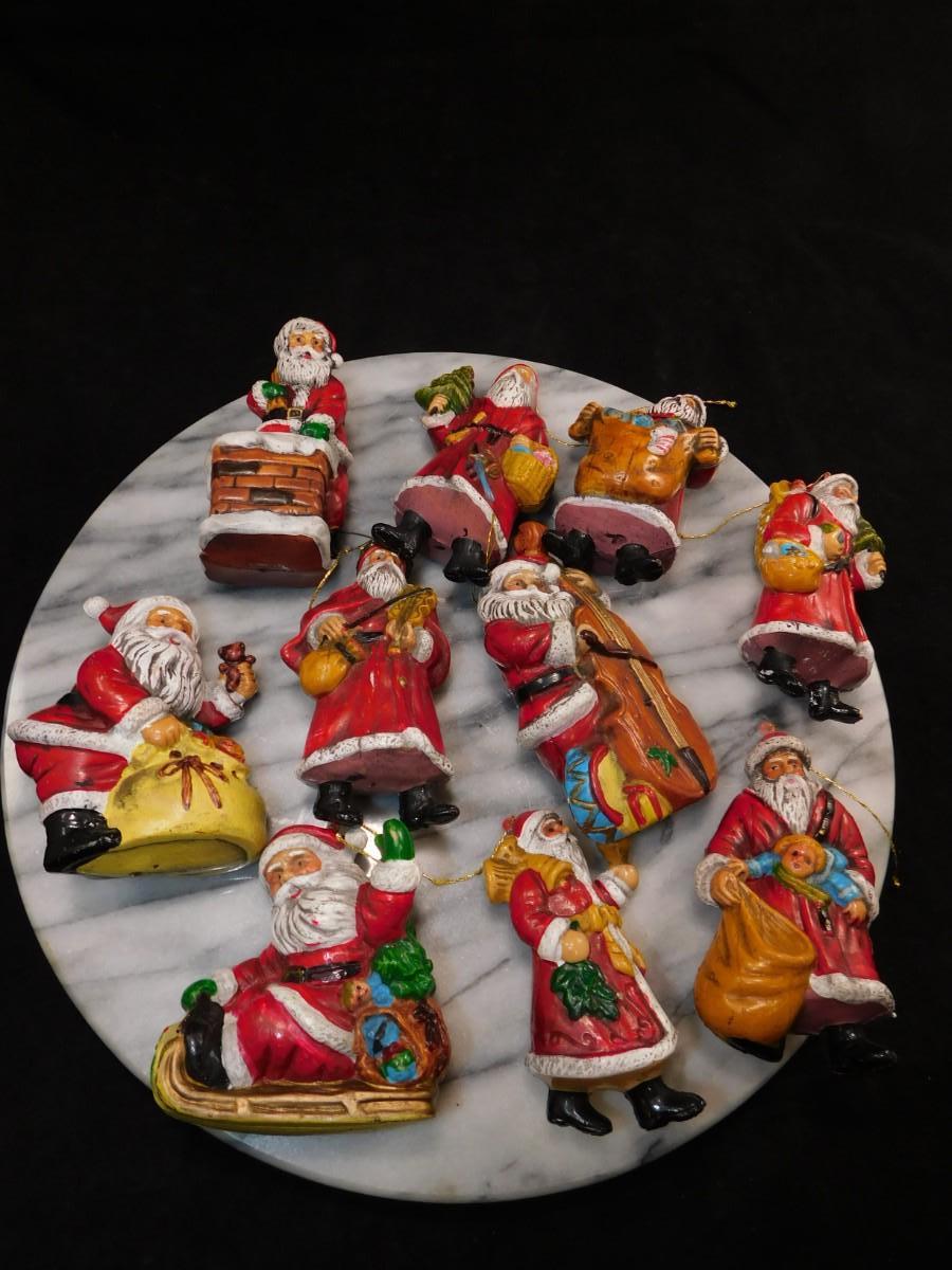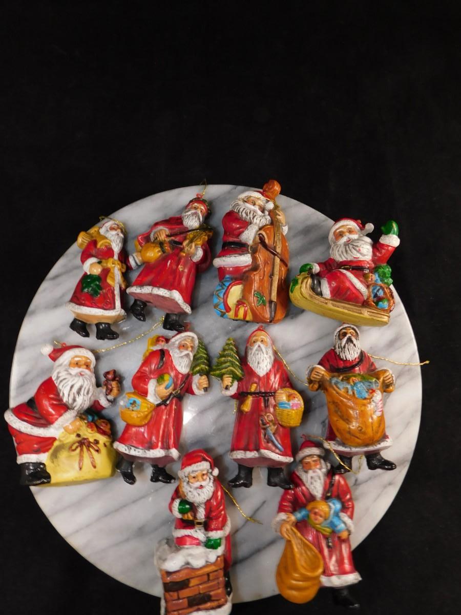 Lot of 10 Vintage Old World Santa Plastic Christmas Ornaments