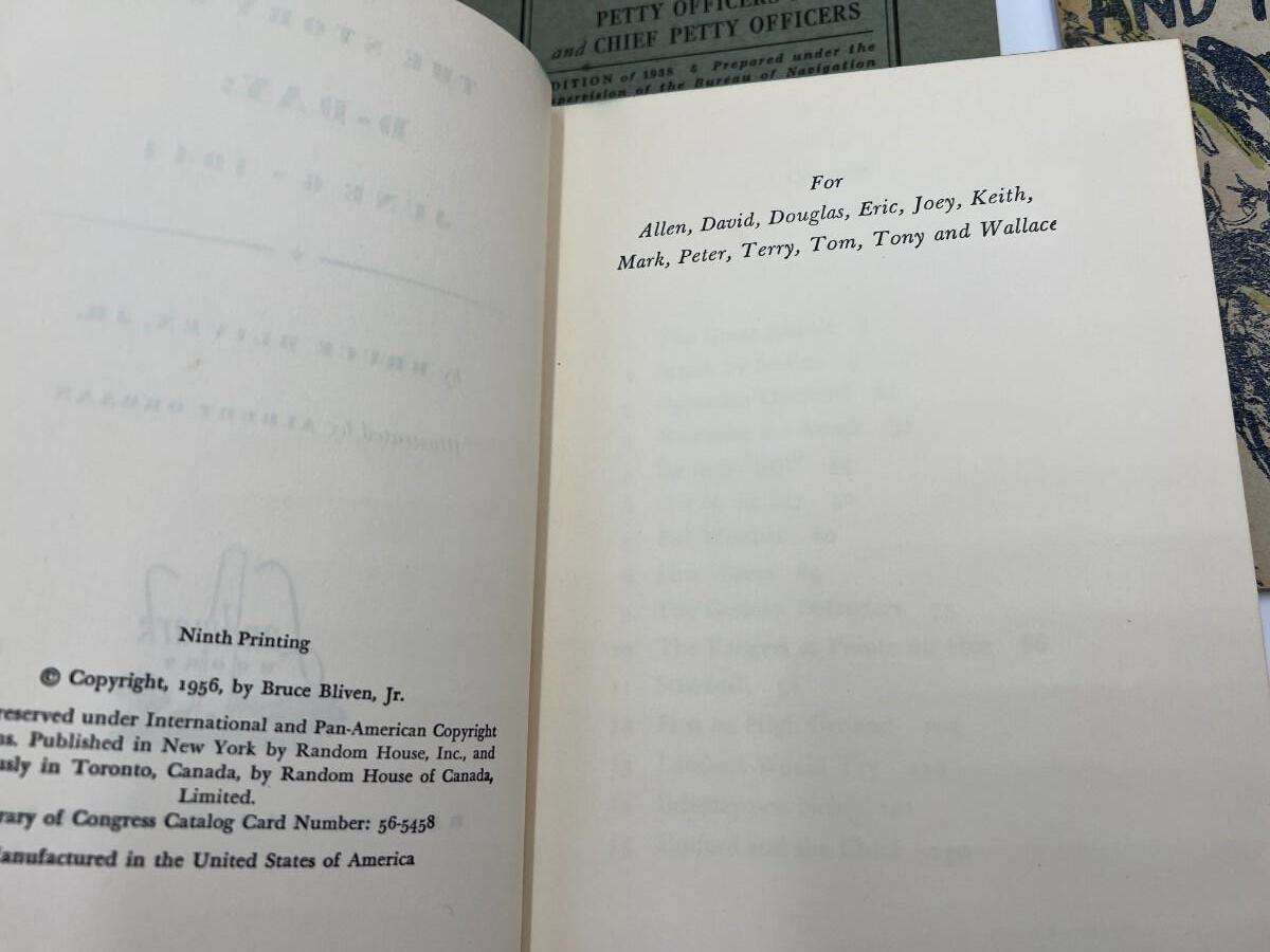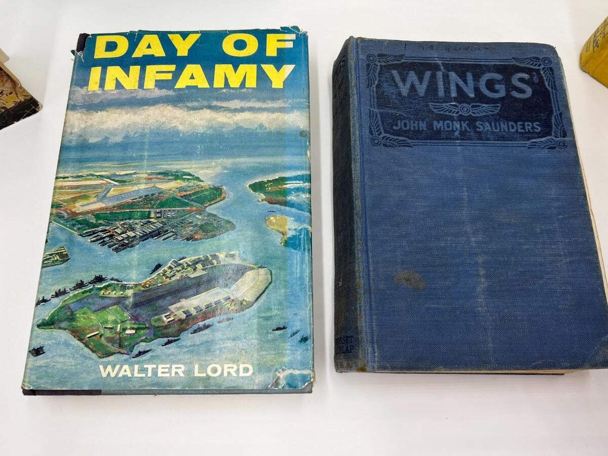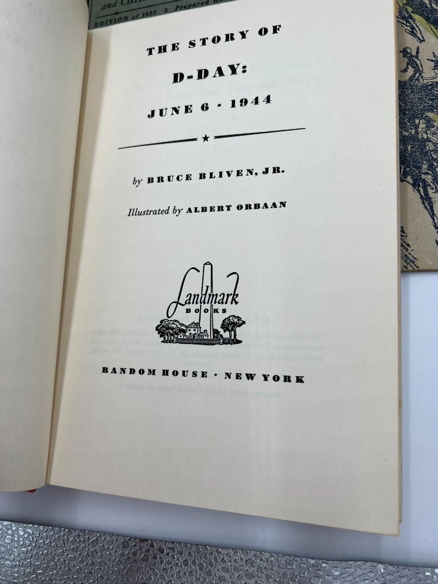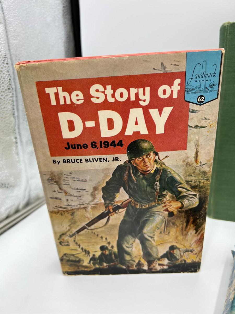 Lot of 10 War Related Vintage Books including books circa 1920, 1930, 1940, 1950 and 1960. Includes The Story of D-Day, The First World War, Mud Mules and Mountains, Day of Infamy, and a 1938 pre-war USN PO & CPO Manual. Conditions as shown.