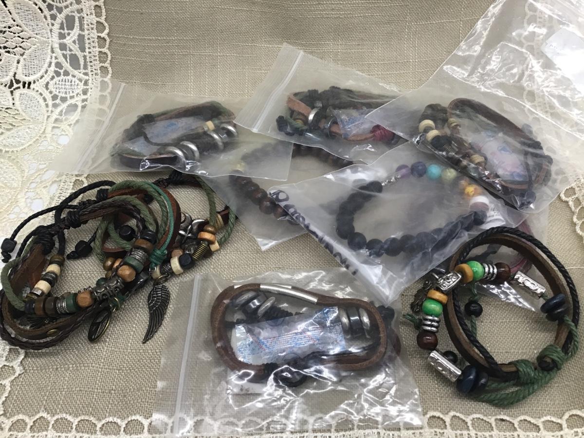 Lot of 11 New Leather and Bead Boho Style Bracelets