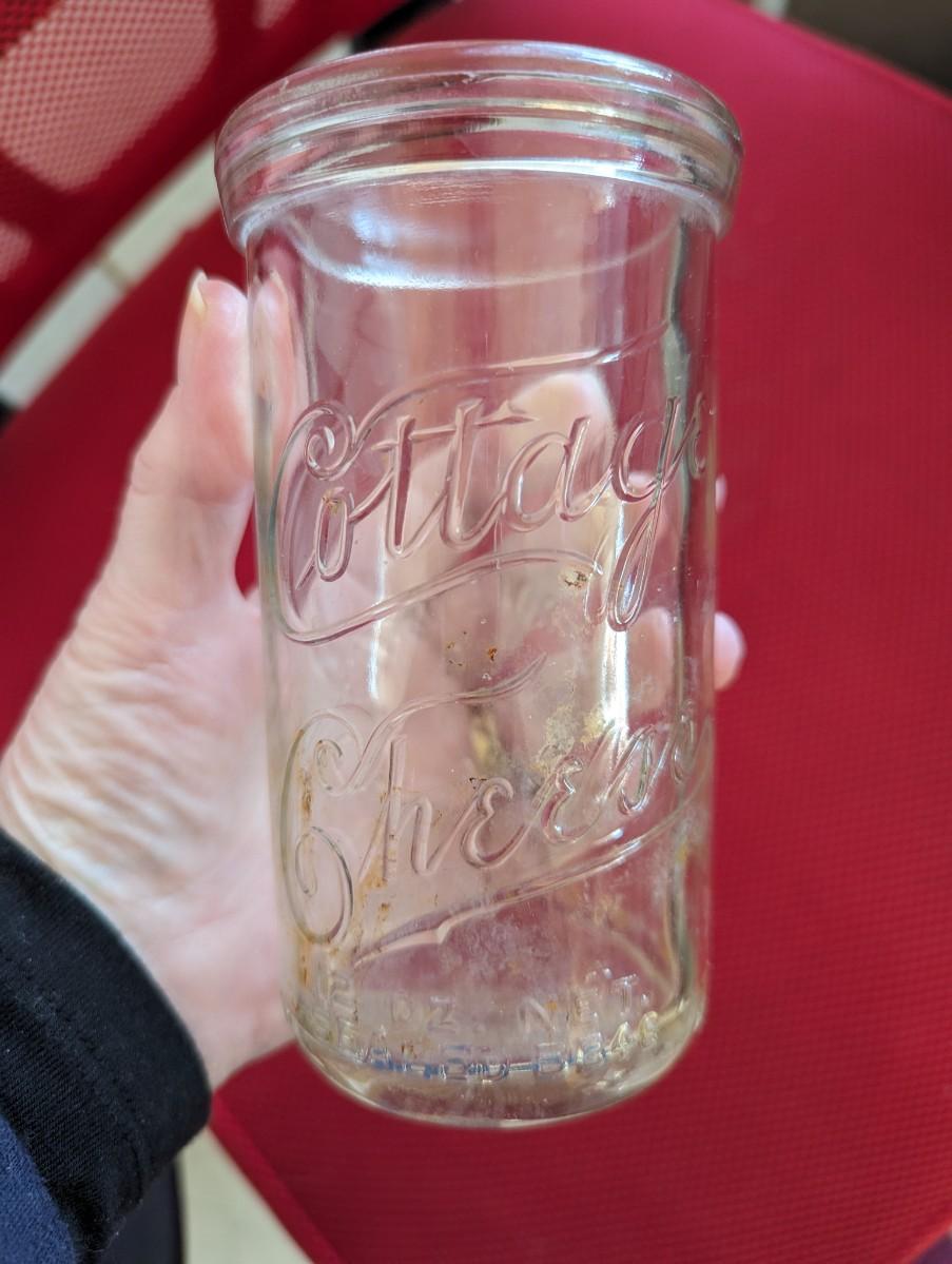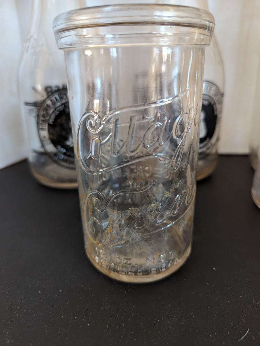 1 12 oz bottle with 'Cottage Cheese' embossed on one side and 'Roanoke Dairy and Ice Cream Company Inc embossed on the other