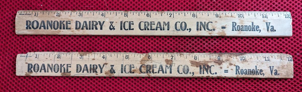2 Roanoke Dairy and Ice Cream Co, Inc 12" rulers (We just found these so they are in a separate photo)