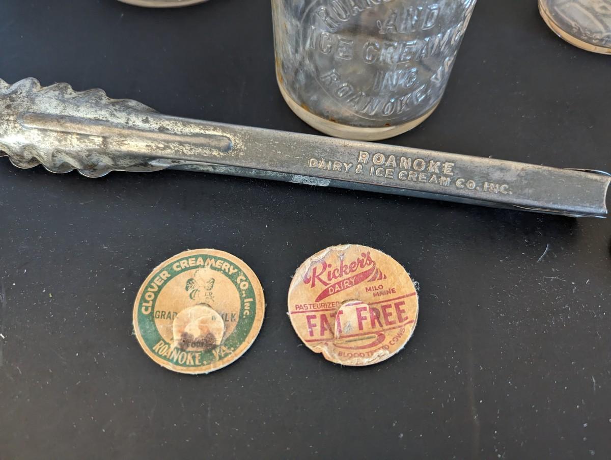 Lot of 13 pieces-Roanoke Dairy and Ice Cream Company Bottles - Milk and Cottage, 2 rulers, plus more