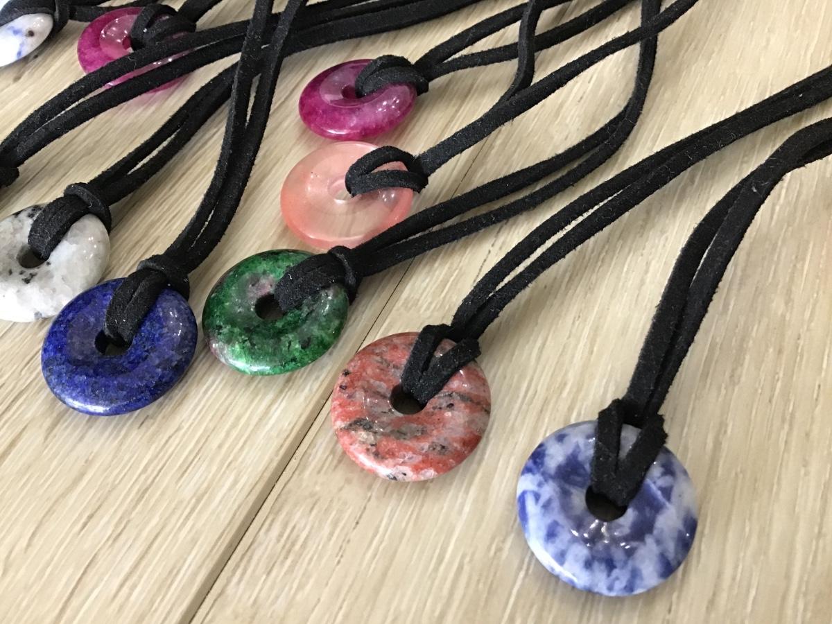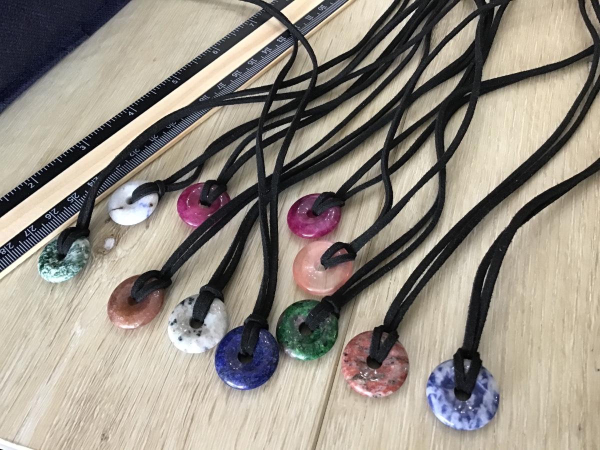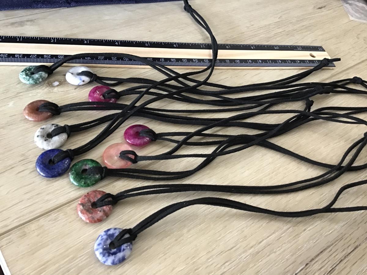 Lot of 11 stone pendants on Leather style cord necklace. Lot of 11 New