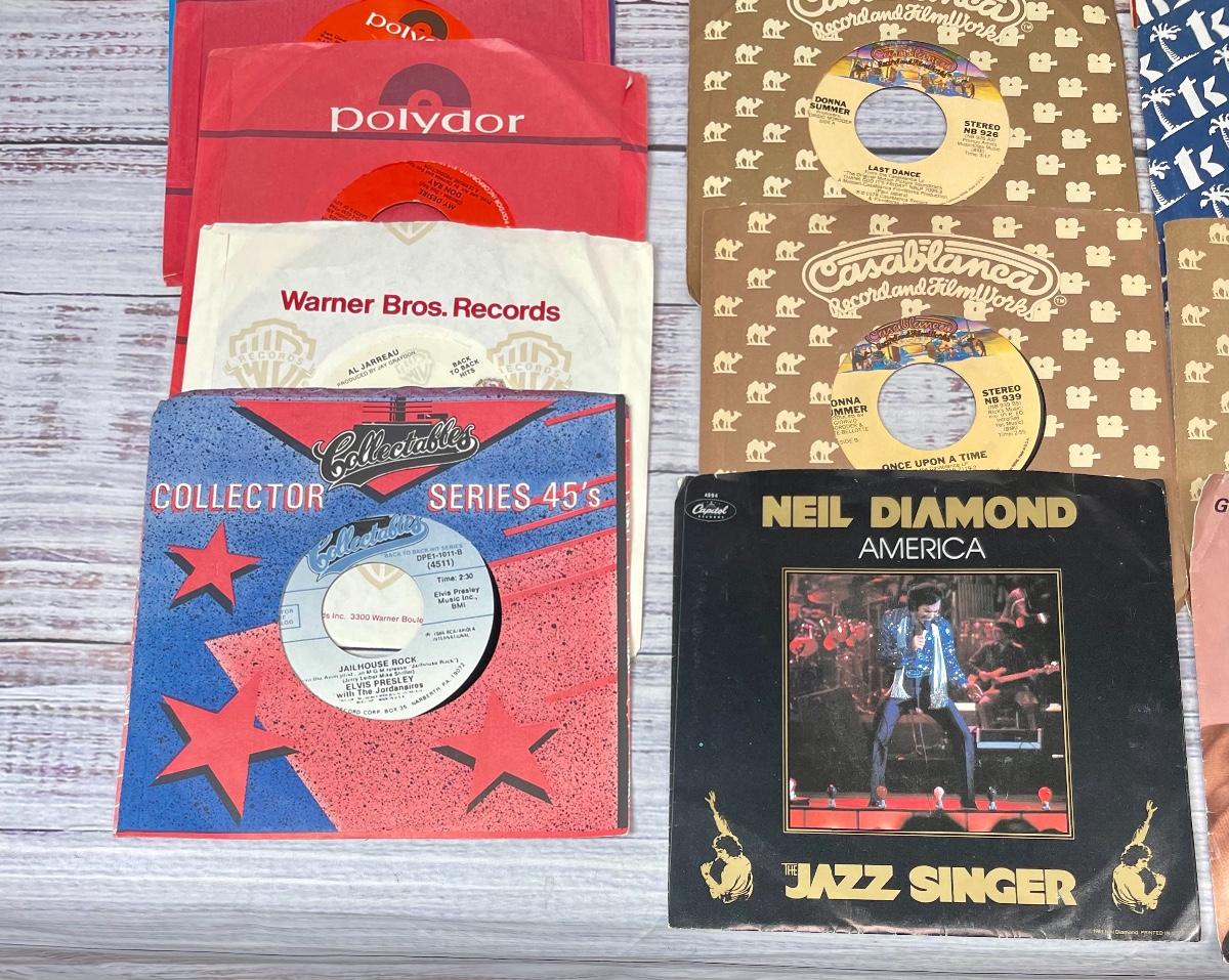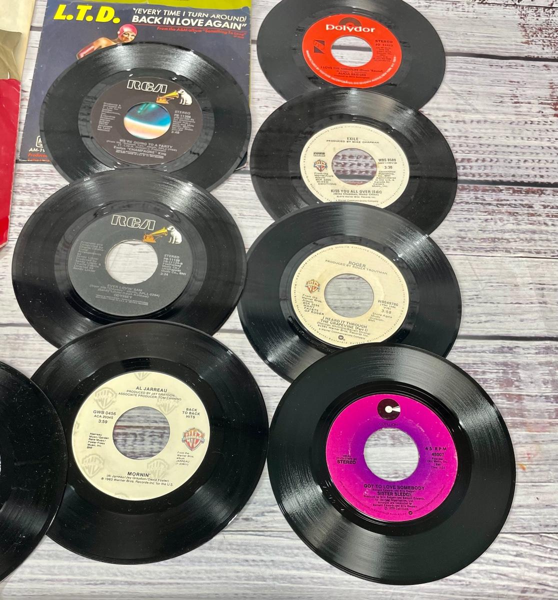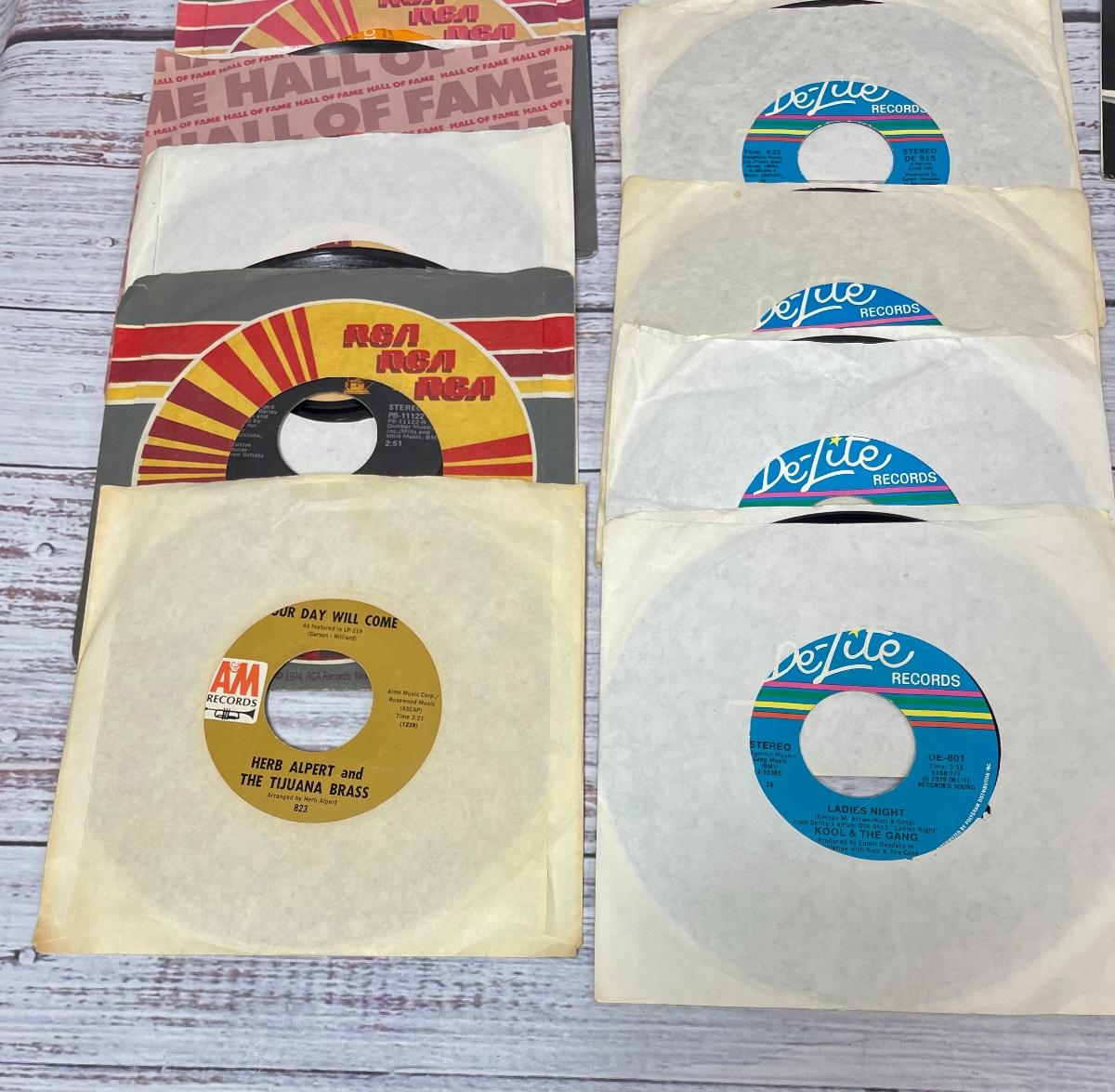 Use lot of vintage 45s, most from 1970’s and early 1980’s. Includes Motown, Disco, Pop, R&B, Country, and some special releases. Labels include RCA, Epic, Casablanca, Columbia, Dot, Motown, Polydor, Atlantic, Asylum, ABC Records, De-Lite, RSO, and Warner Bros.