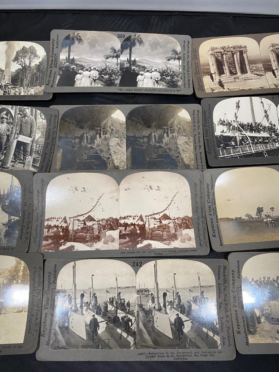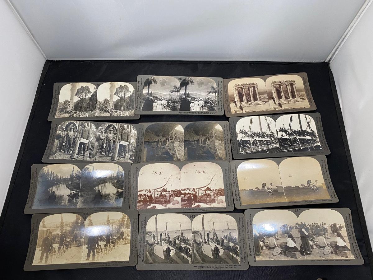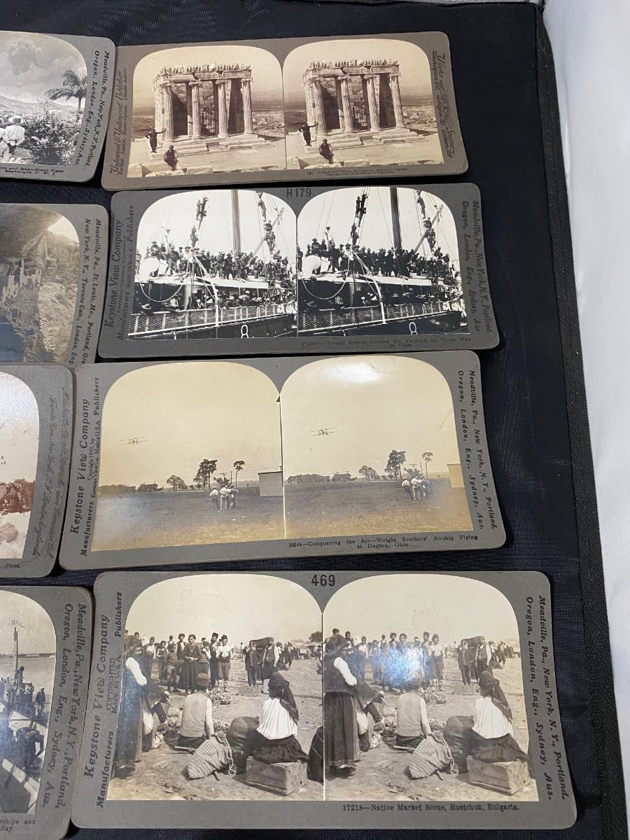 Lot of 12 antique stereoscope cards. Foreign places, the Wright Brothers, Alaska, and more. See photos for more details.