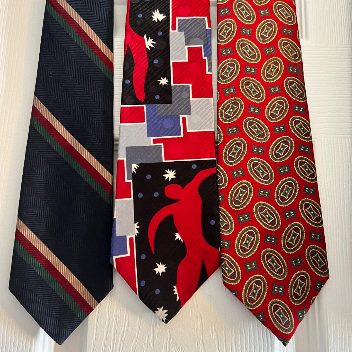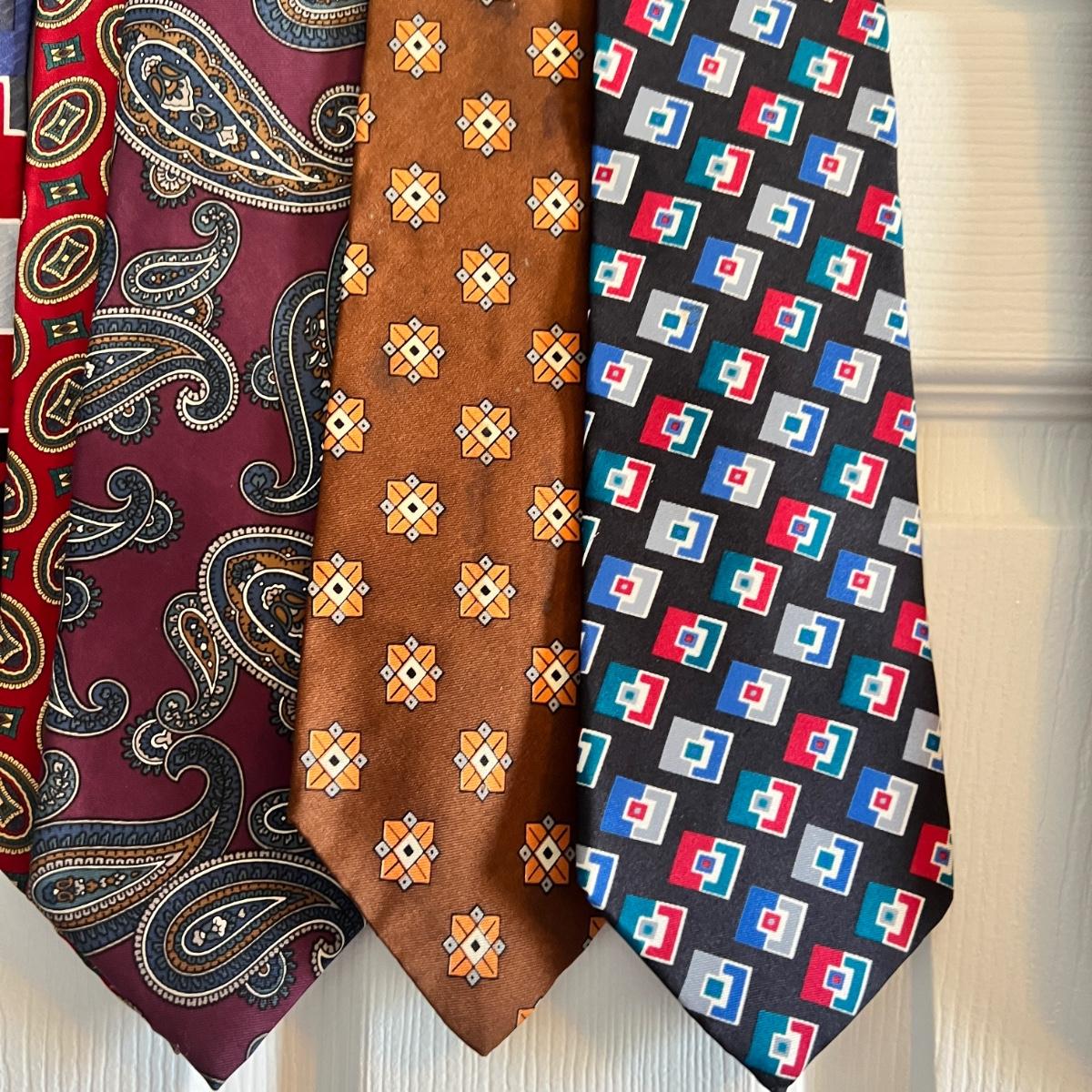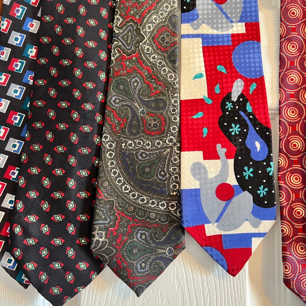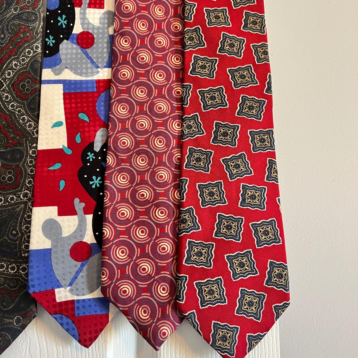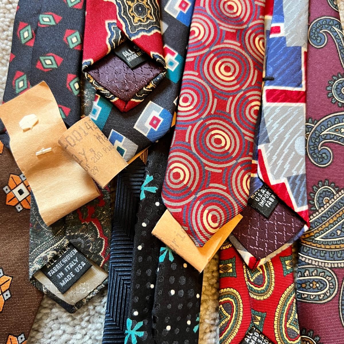 Great designer tie lot! Conditions vary. Some have been dry cleaned and still have paper tags attached as shown in pics. We have other designer vintage tie lots up for auction as well.