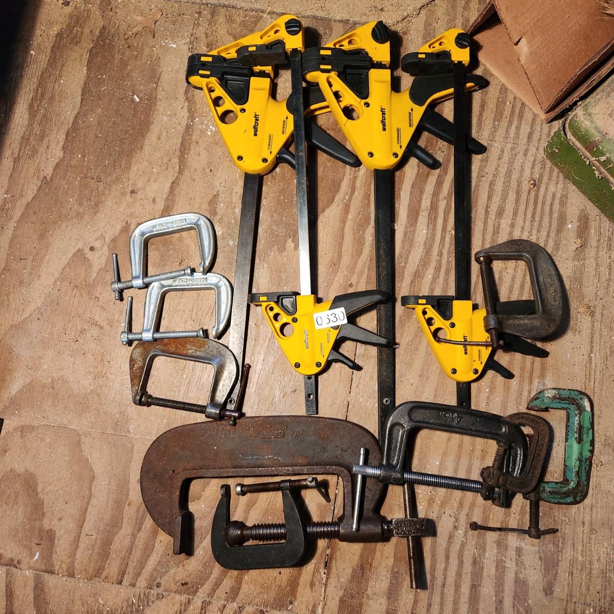 Lot of 12 Clamps 4 Wolfcraft Bar Clamps 8 Metal c-Clamps lot 630