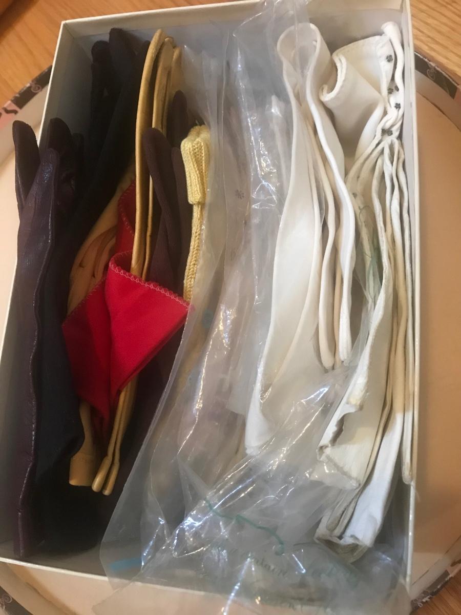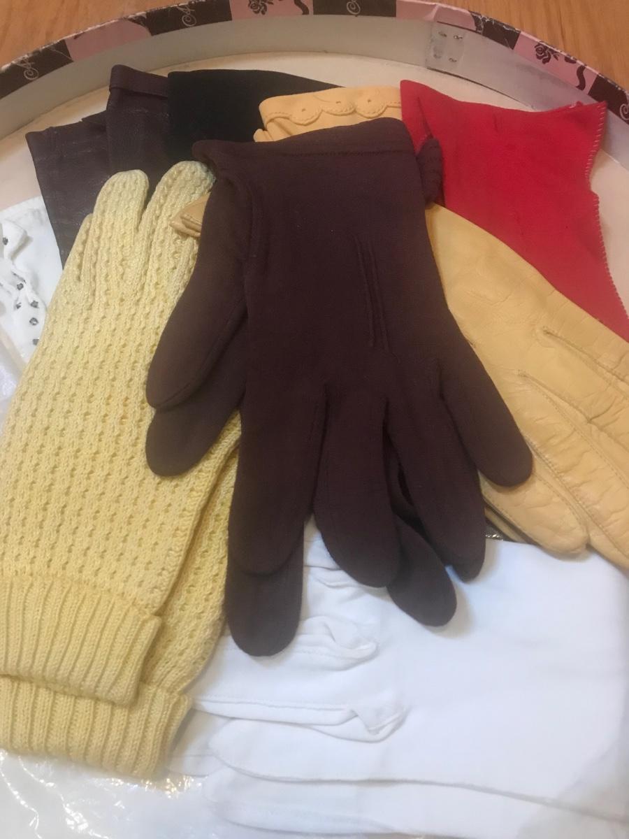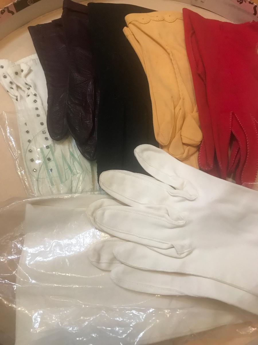 Cotton, knit, leather, suede vintage gloves in varying sizes and styles. Opera, mid and wrist lengths. Condition varies from fair to excellent.