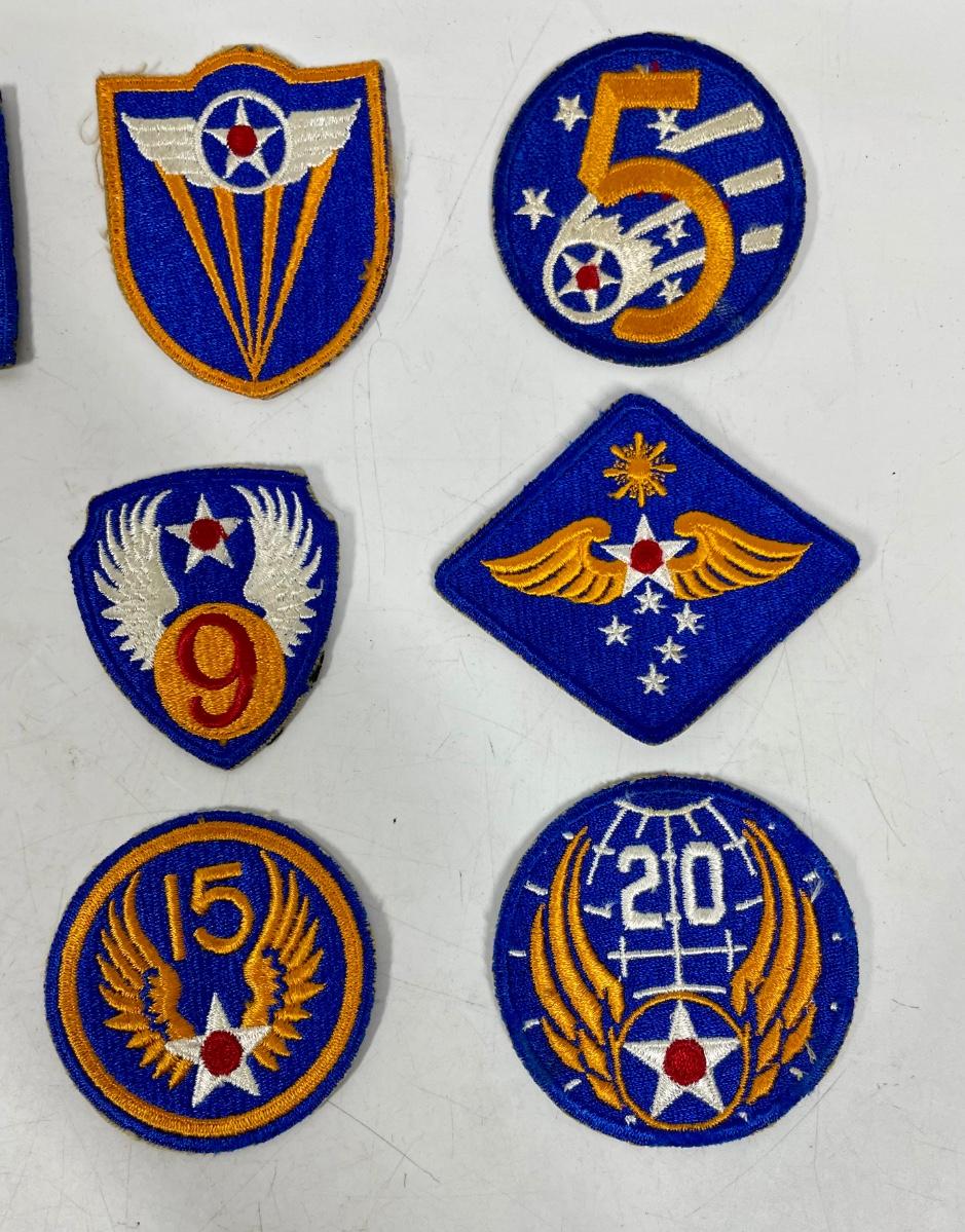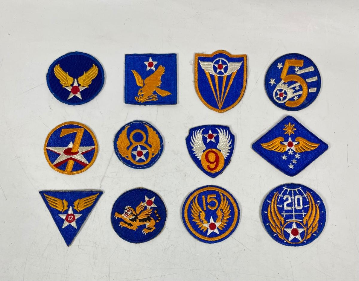 Lot of 12 US Army Air Corps Air Force Patches. Includes: US Army Air Corps shoulder patch, 2nd Air Force, 4th Air Force, 5th Air Force, 7th Air Force, 8th Air Force, 9th Air Force, Far East Air Force, 12th Air Force, 14th Air Force, 15th Air Force, and 20th Air Force. All patches in excellent condition.